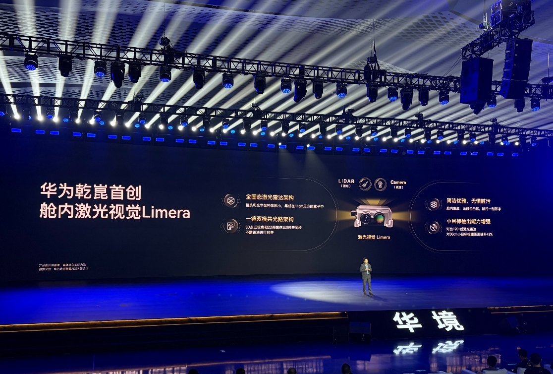 华境 S 用的是华为的舱内激光视觉 Limera,把激光雷达放进了车内,也就是华