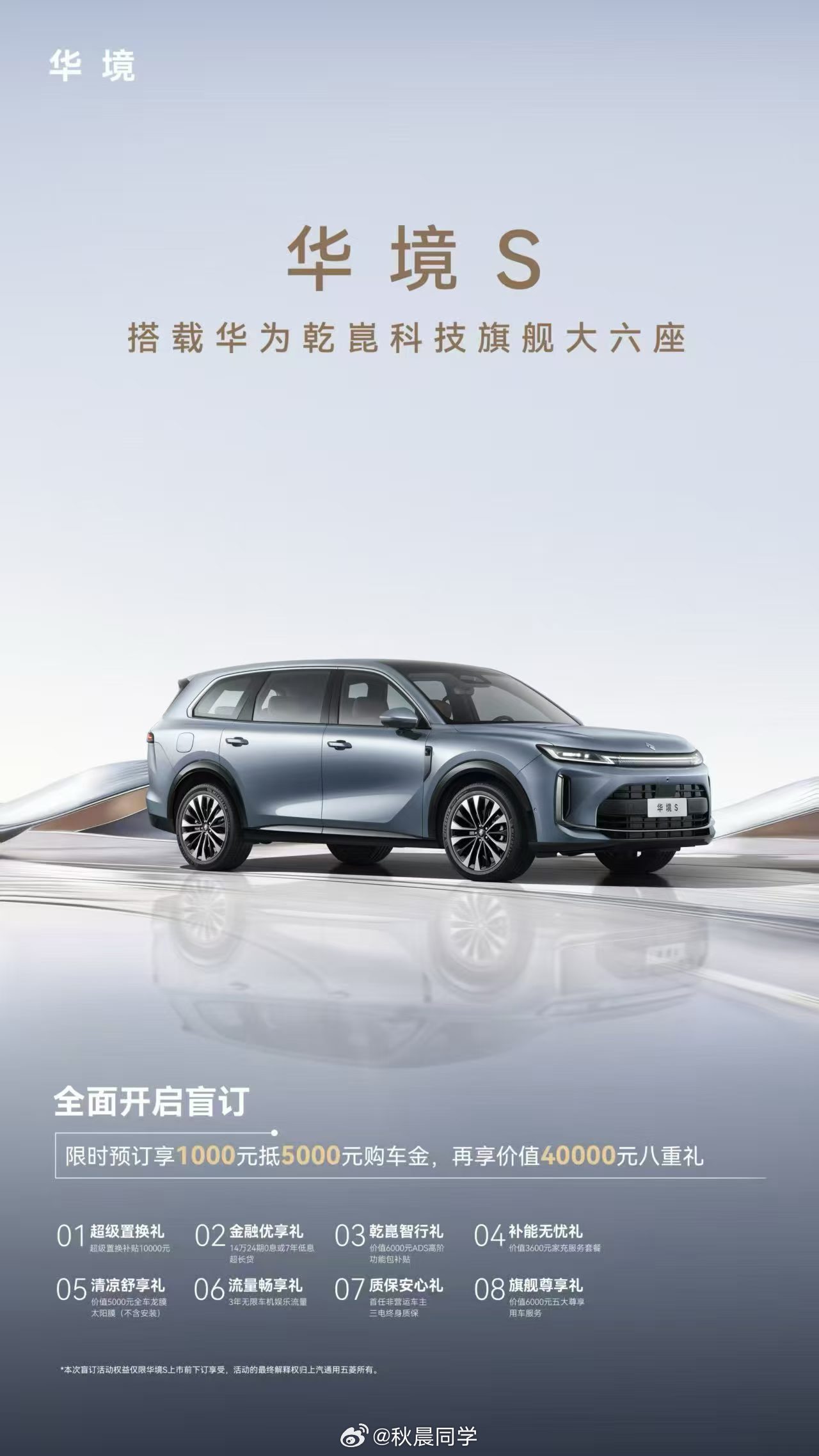 五菱+华为=华境,华境S正式开启预订大六座SUV,5米2车长,3米1轴距全系标配华为乾崑、华为鸿蒙座舱、乾崑车云HUAWEI IVCS