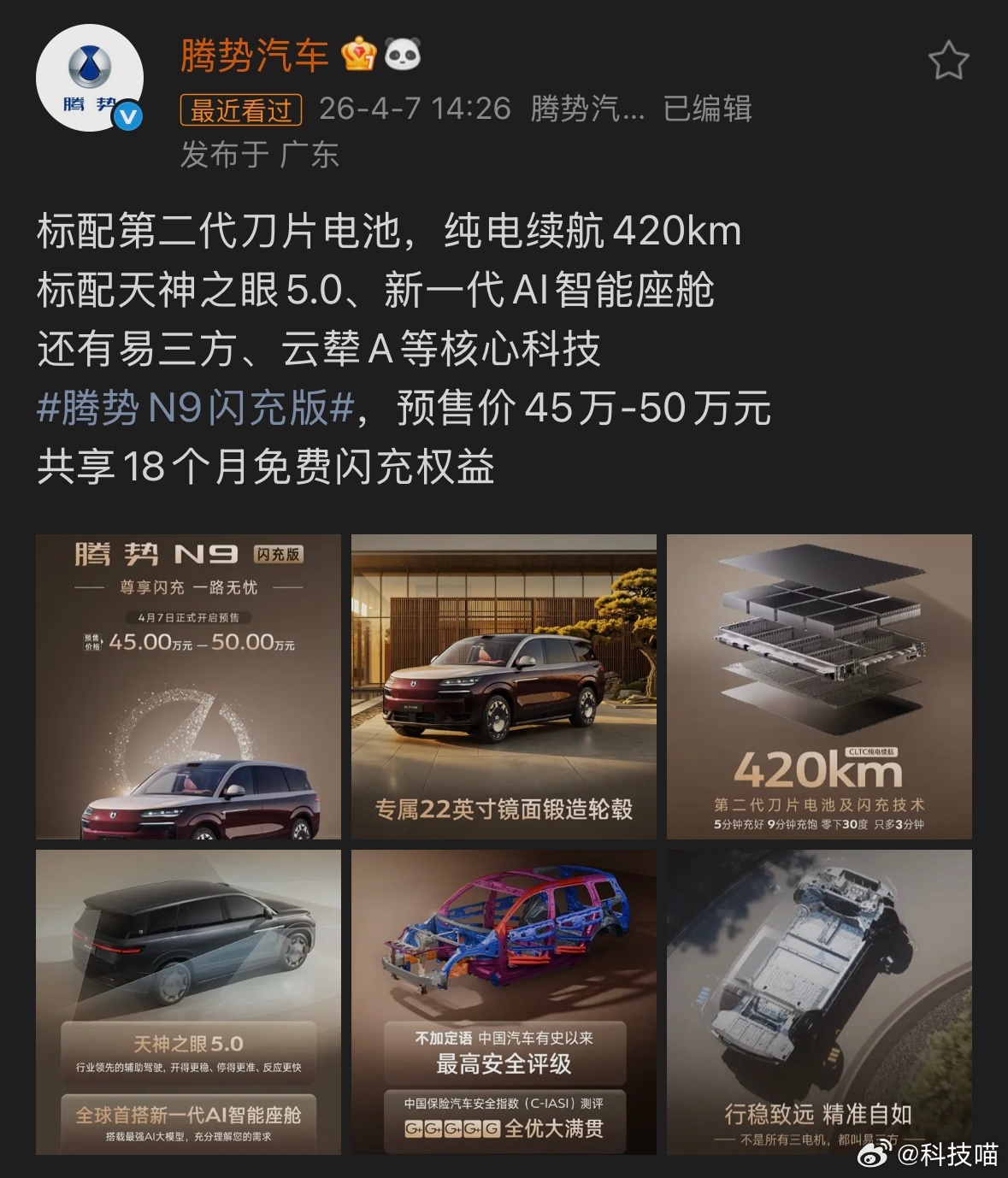 腾势N9闪充版预售开始了,45万—50万
