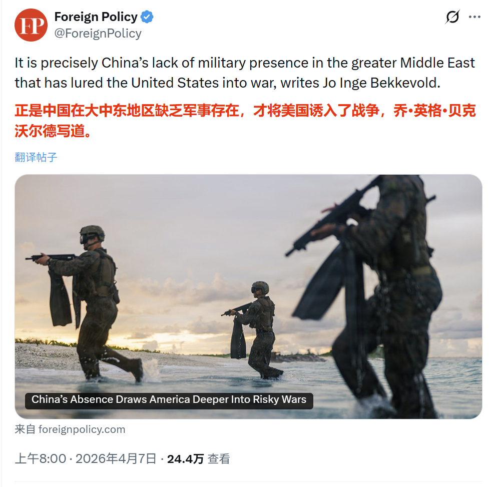 美国《外交政策》杂志:“正是中国在大中东地区缺乏军事存在,才把美国引向战争”有病