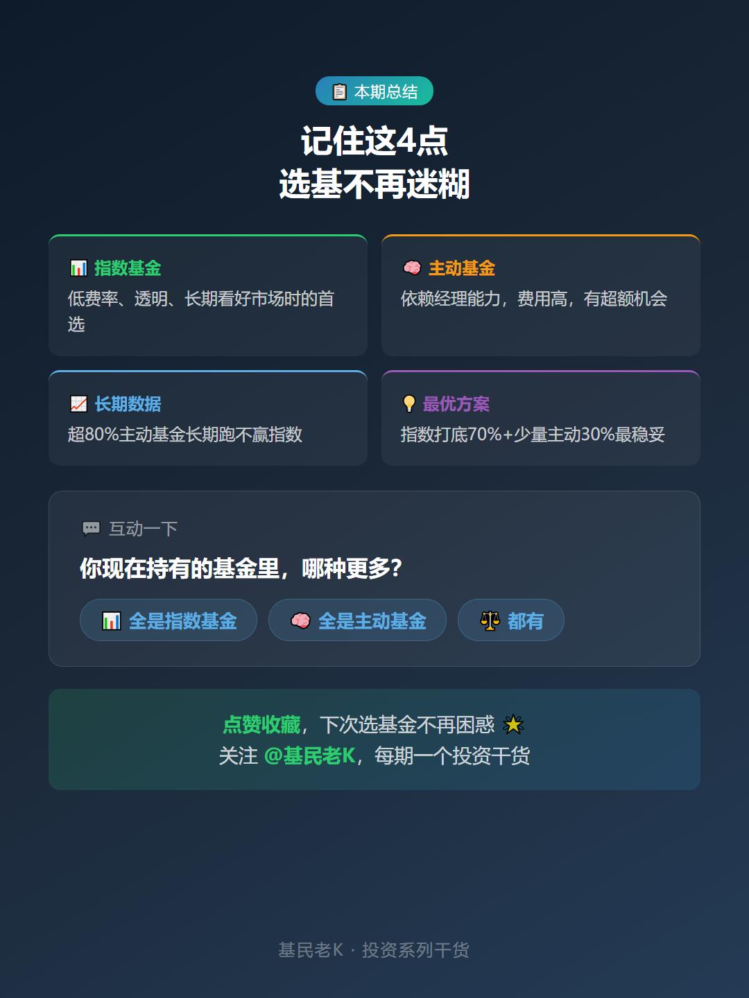 基金理财 指数基金 主动基金 投资干货 基民老K 理财入门 基金科普