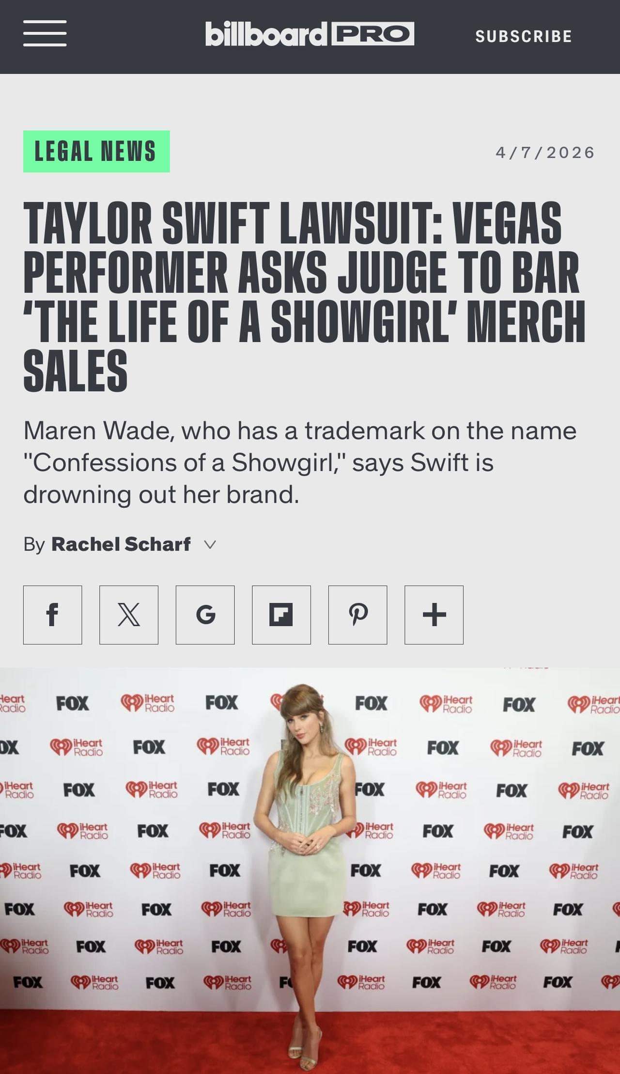 在起诉泰勒·斯威夫特侵犯她的“表演女郎的自白”商标一周后,拉斯维加斯表演者马伦·韦德Maren Wade现在要求法院禁止这位超级明星出售“表演女郎的生活”(THE LIFE OF A SHOWGIRL)所有涉及商品。