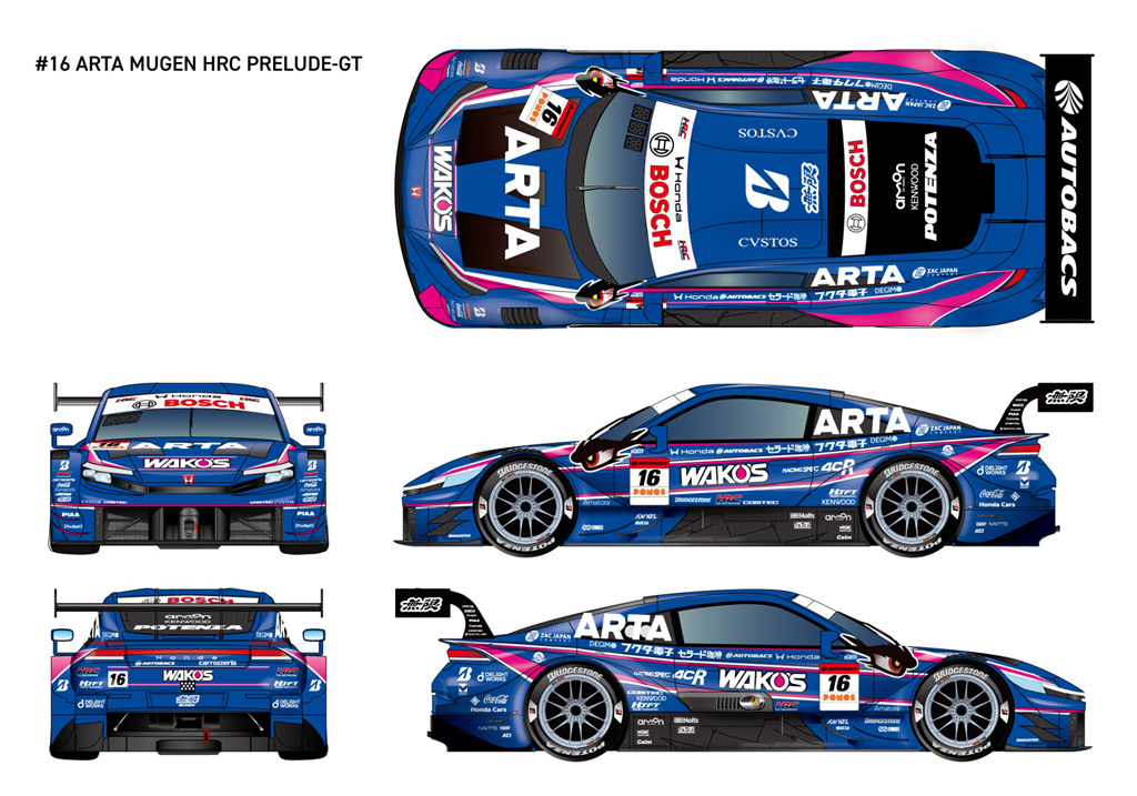 ARTA Mugen揭晓其出战2026赛季Super GT的两台本田Prelude-GT赛车的涂装,整体延续了去年“闪电”概念,16号车则依然是WAKOS主题拉花……