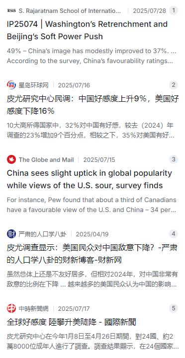 那咱们这边怎么看待美国呢?中国老百姓对美国的观感,这些年其实也经历了一路下滑。2010年前后还有将近六成的人对美国抱好感,到2021年就降到了四成左右。清华大学战略与安全研究中心在2025年做的调查,用5分制打分,美国拿到了2.38分,跟排在头名的俄罗斯比还是有差距。不过这个分数比之前有回升,说明大家对美国的看法并没有一沉到底。