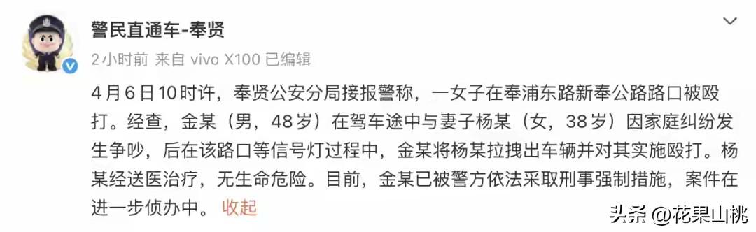 这不,4月6日上午10点左右,上海的一对夫妻就上演了这一幕,夫妻俩驾车行驶在上海市区的道路上,路上因一些家常纠纷发生争吵。