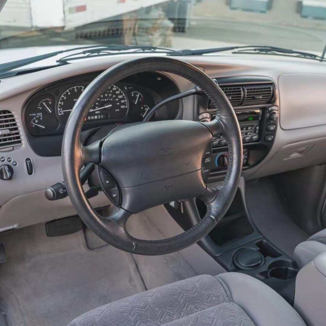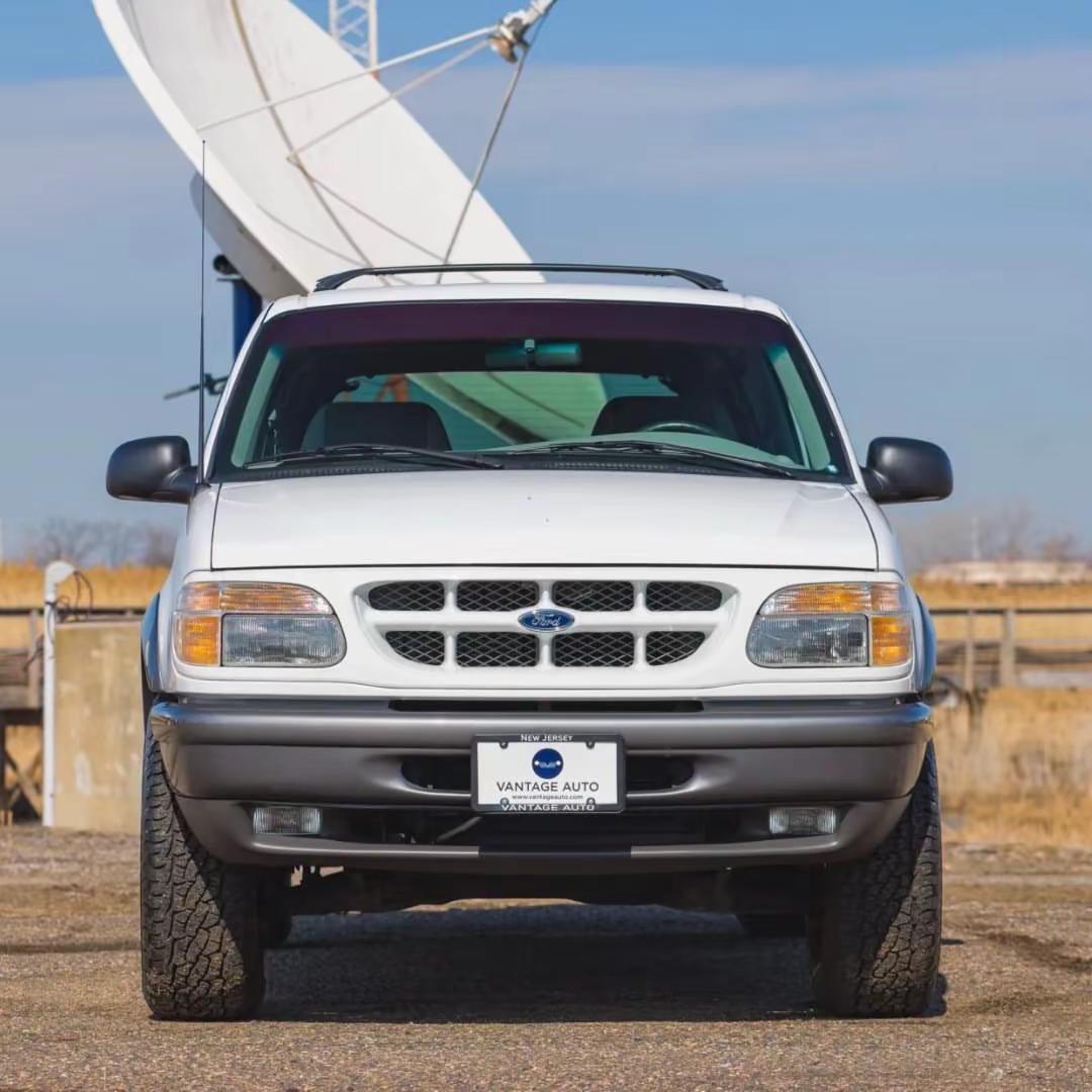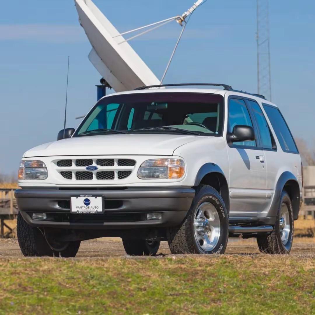 1998款福特Explorer Sport,诞生于美式SUV由“工具车”向“生活方式载体”转型的关键阶段。相比四门版本,这台两门车型更显紧凑干练,短轴距带来的不仅是更灵活的操控,也让整车姿态更具力量感与运动气息。Oxford White Clearcoat白色车漆配合Medium Graphite灰色内饰,在视觉上呈现出典型90年代美式工业设计的克制与实用。动力方面,其搭载一台4.0升SOHC V6发动机(排量约4000毫升),匹配五速自动变速箱,并配备带低速挡的分时四驱系统,既能胜任城市通勤,也具备一定的非铺装路面通过能力。16英寸(约406毫米)五孔铝合金轮圈、四轮盘式制动系统,以及包括电动调节座椅、定速巡航、空调和CD/磁带一体音响在内的配置,让这台车在当年具备相当完整的舒适与功能性。从时代背景来看,Explorer Sport代表的是一种更“个人化”的SUV表达——它不再只是家庭或工作的延伸,而是开始承载驾驶者的审美与生活态度。简洁、耐用,却不失个性,这种略带粗粝的真实感,正是90年代美式SUV最打动人的地方。福特explorer 经典情怀老车 福特探险者 汽车知识分享计划