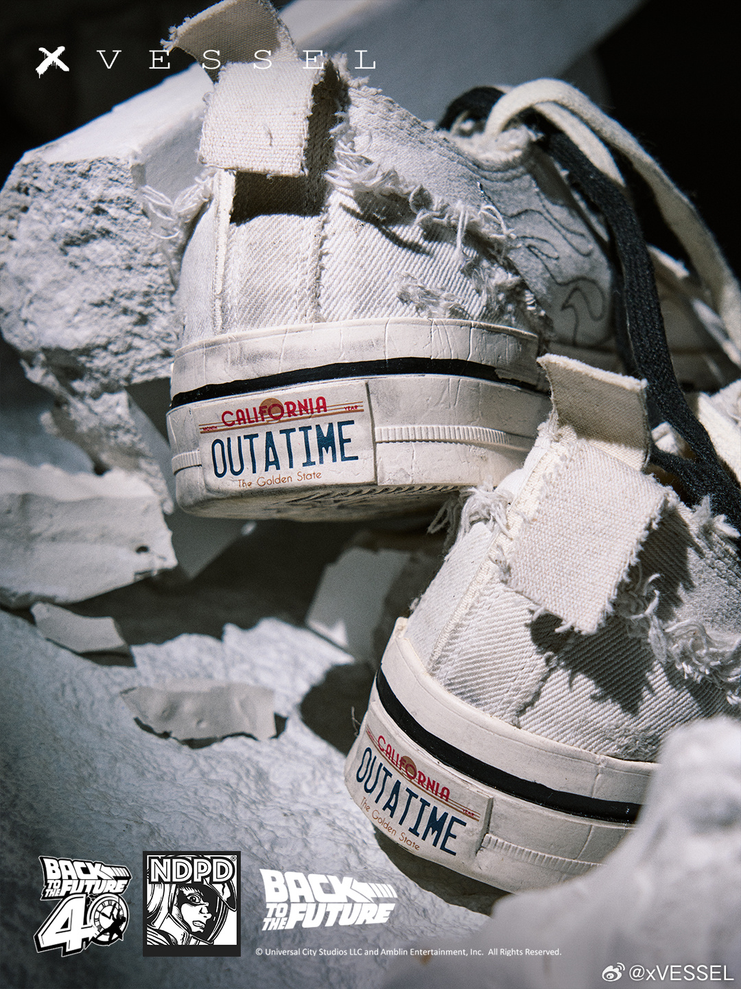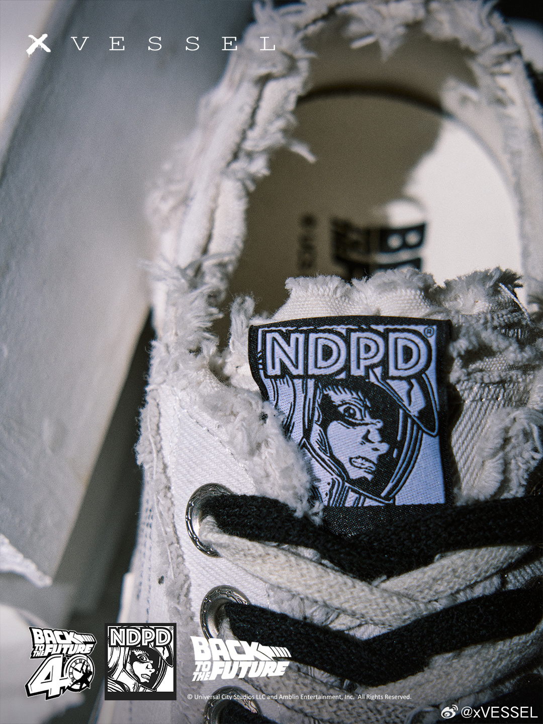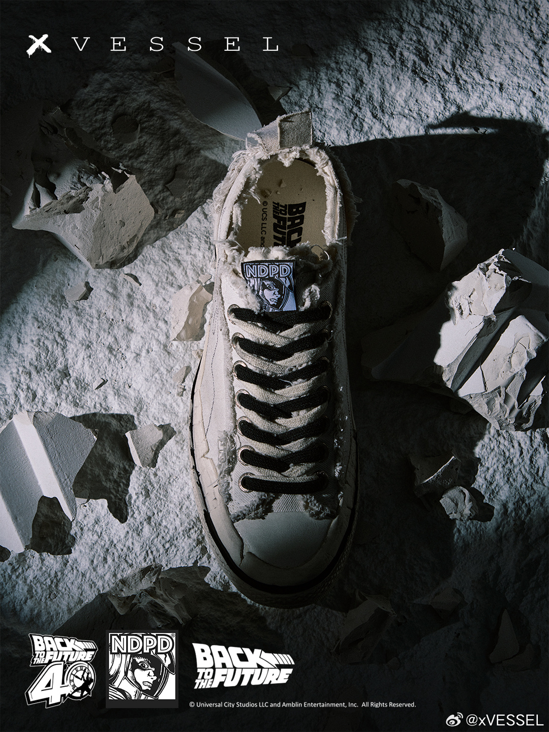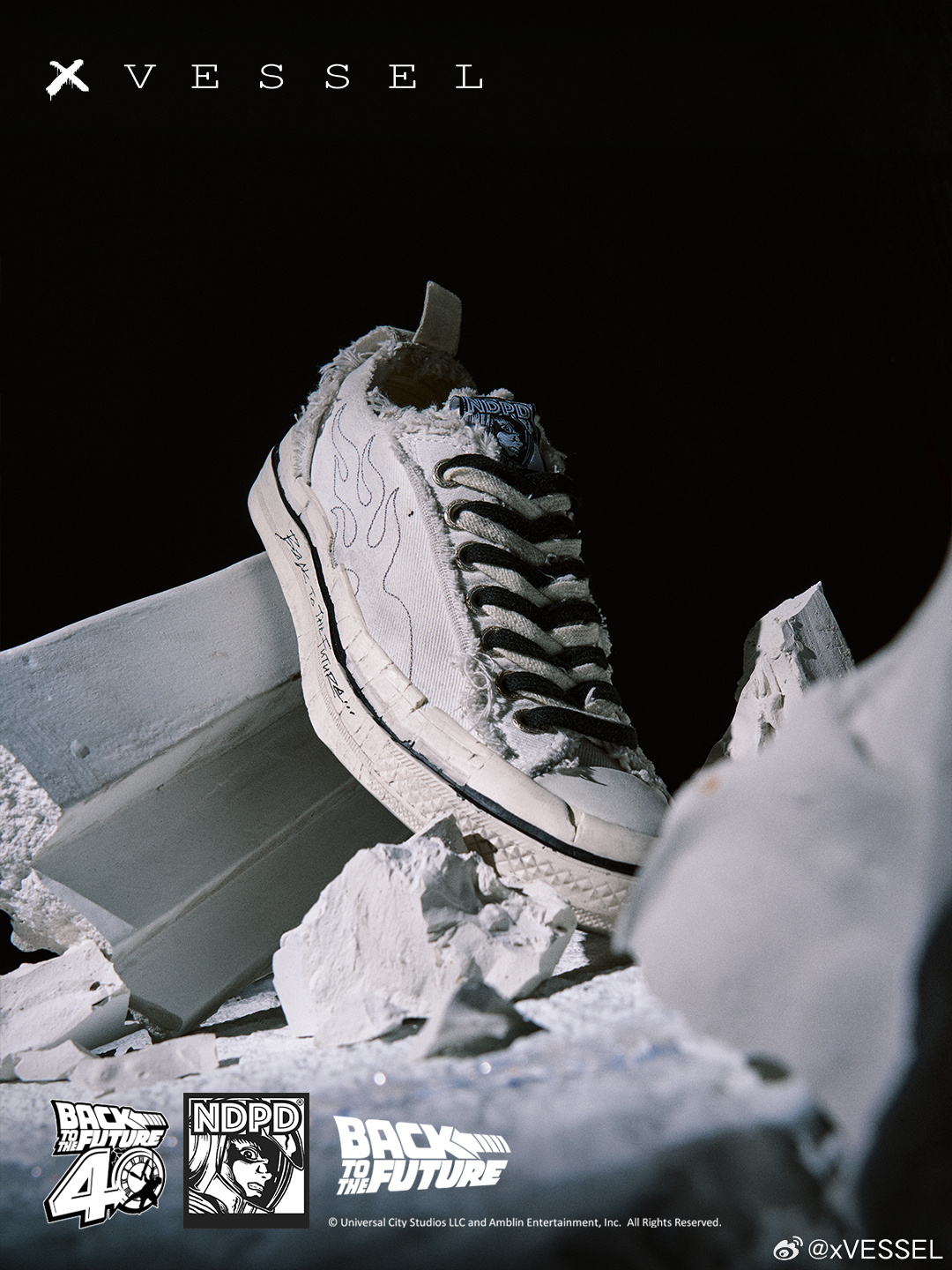 xVESSEL x Back to the Future x NDPD 三方联名「废土」复古白即将迎来发售‼️我们以做旧工艺复刻五十年代经典帆布廓形,将《回到未来》德罗宁穿越后的每一道磨损译作肌理火焰从鞋侧蔓延,既是1985年的尾焰,也是新加坡波普艺术家JAHAN 罗杰瀚 NDPD的笔触鞋舌上,宇航员RIZE超越时间,同时存在于未来与现在后跟双层错位提环、双鞋带、外露鞋标,每一处都是解构主义的注解新鞋旧魂,故事等你来写✍🏻