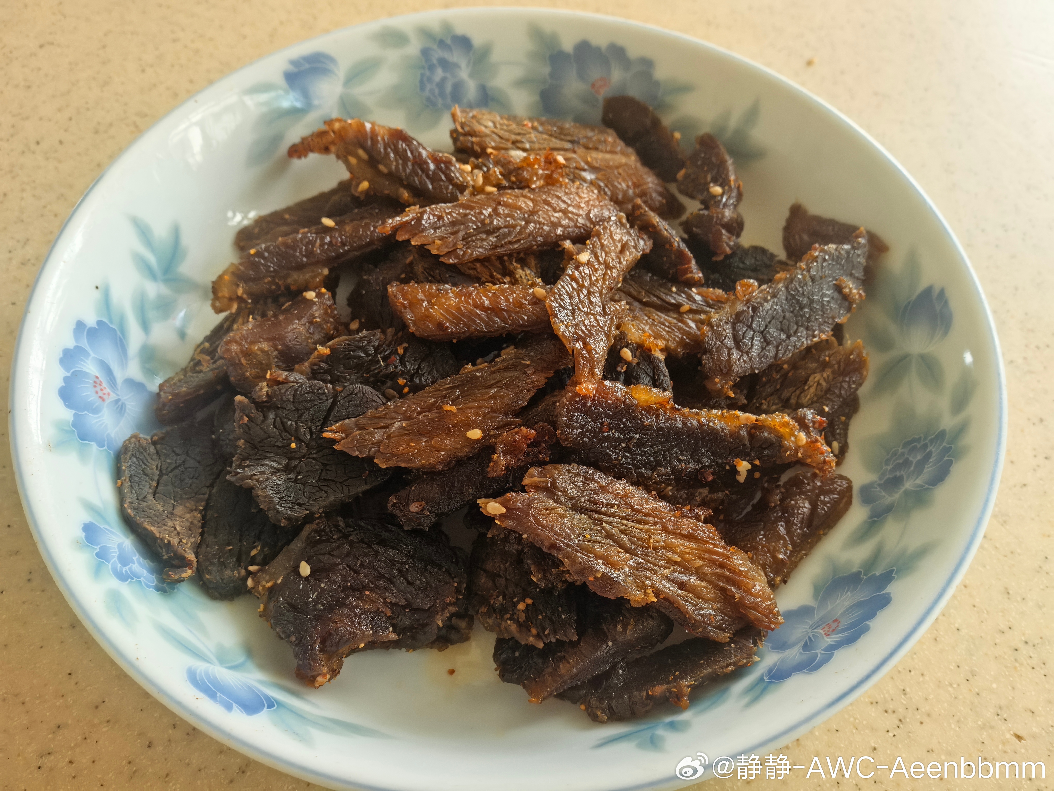 自己做的牛肉干刚刚试了一块味道还挺好的