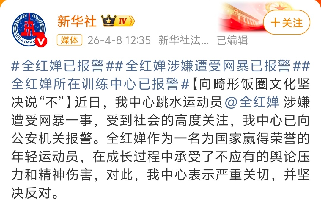 全红婵已报警报警应该的,这事终于有下文了不过也别啥都扯饭圈了,饭圈没有这么没底线