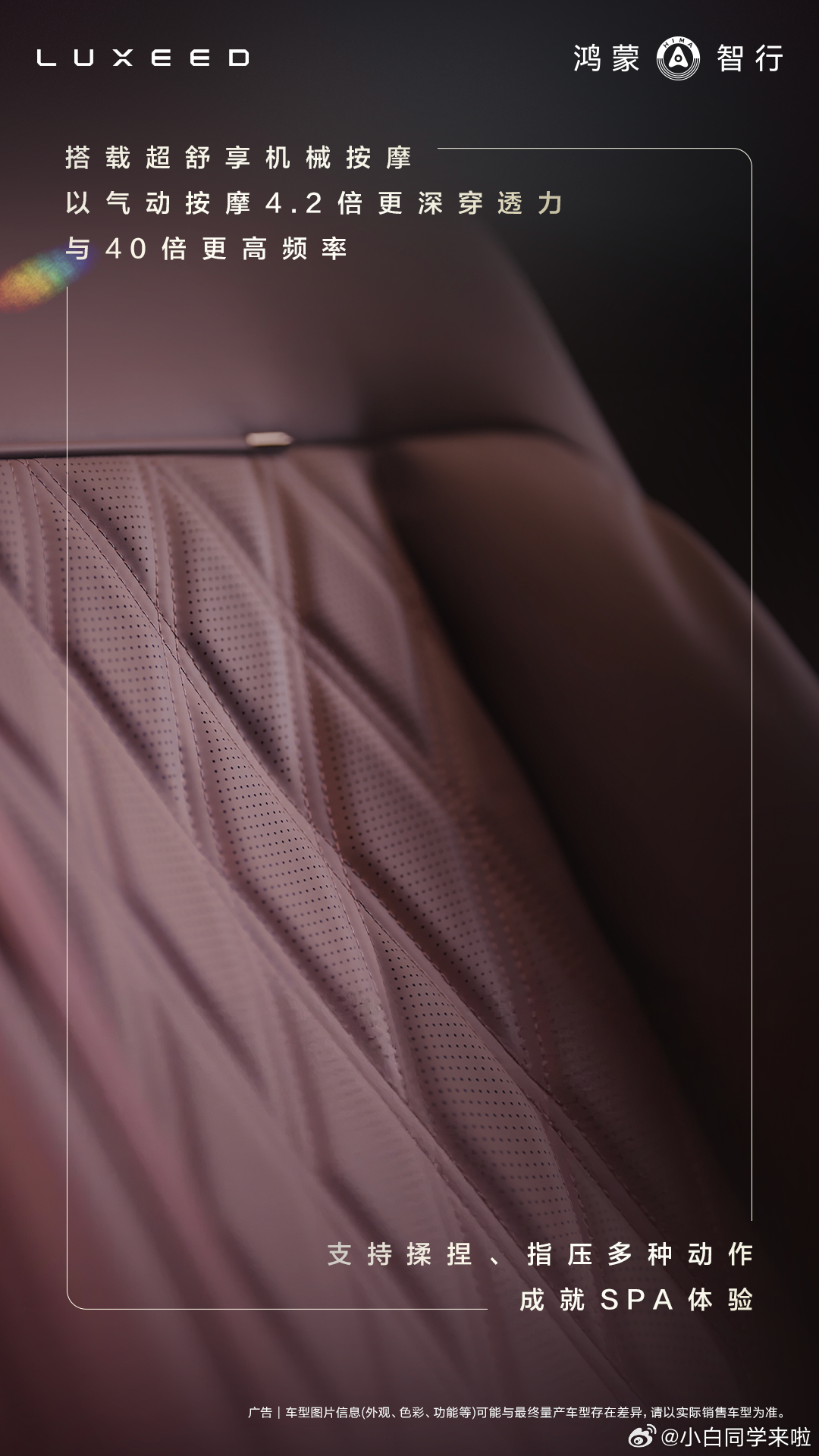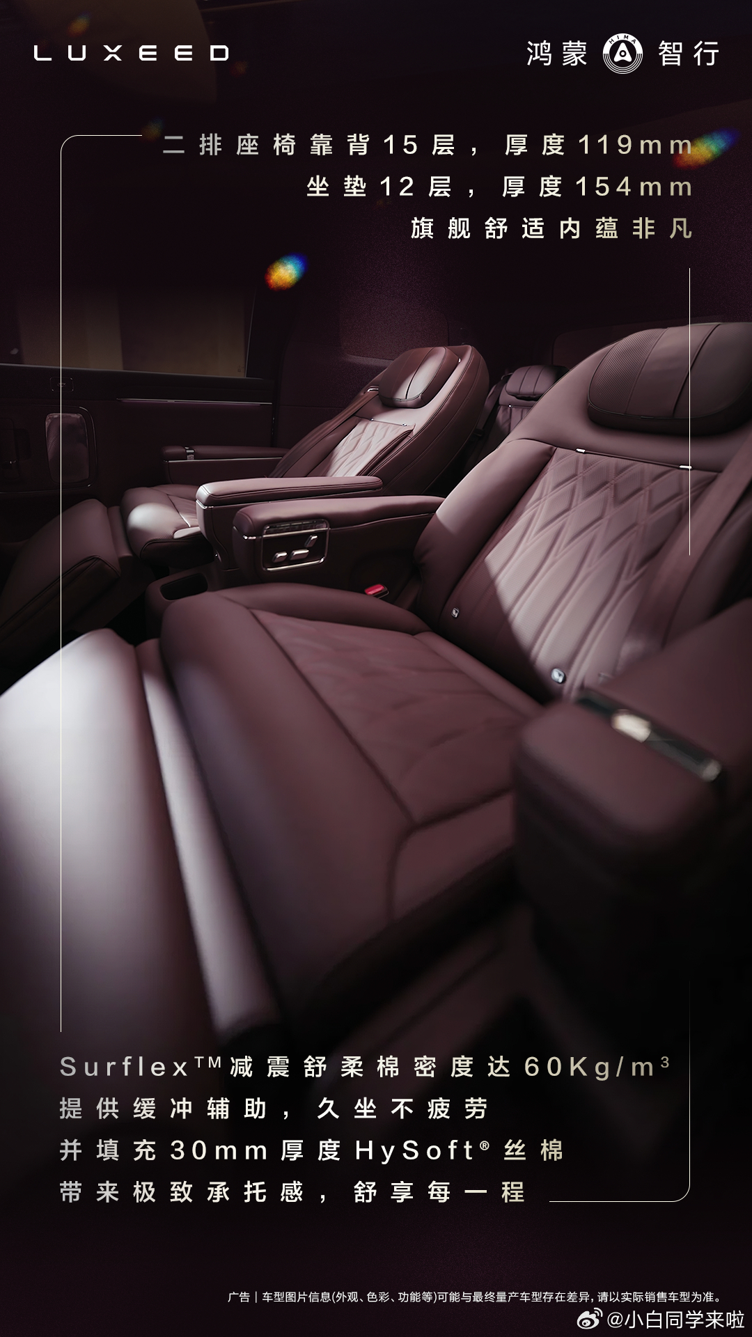 这组内饰图可以看到二排这两把座椅真用料是真足,伊姆斯躺椅、对坐模式、机械按摩、主动侧翼,腿托厚度很厚。