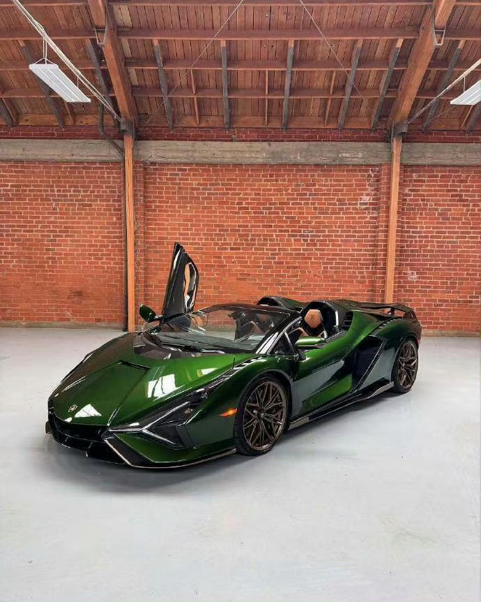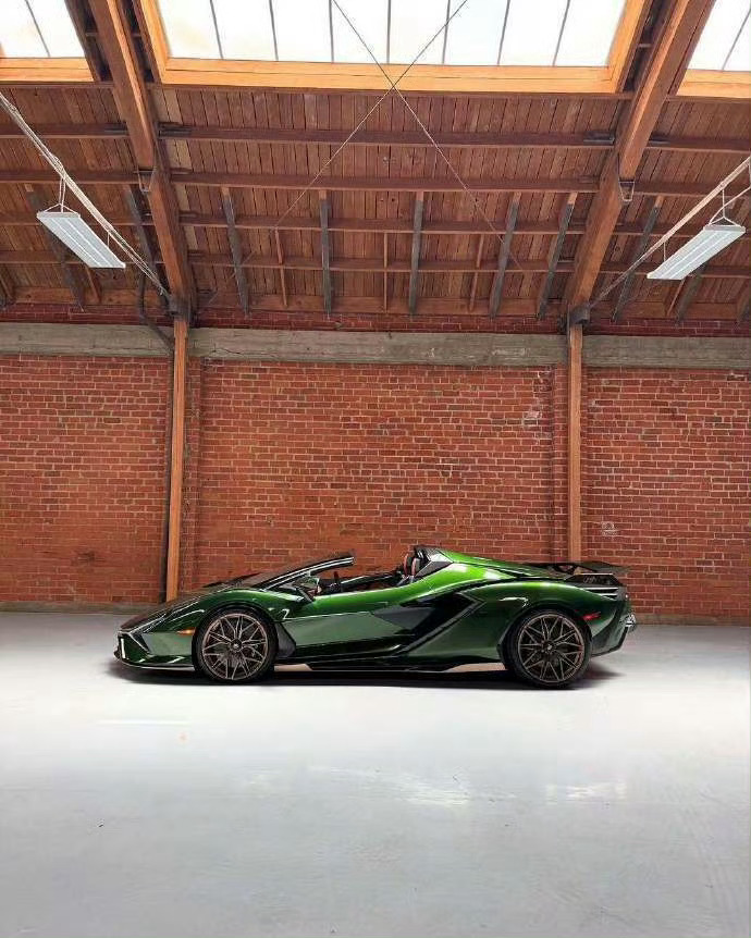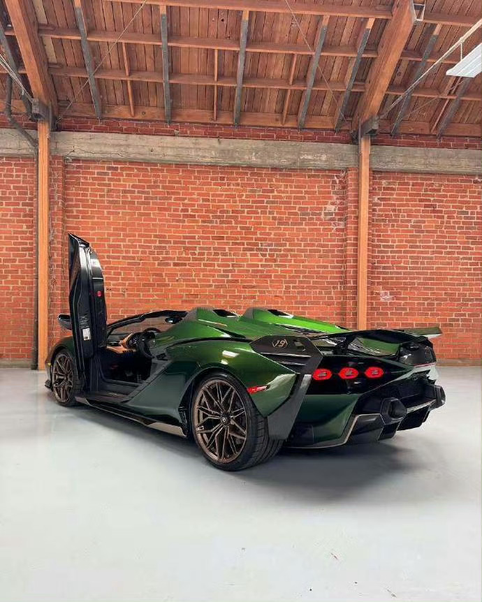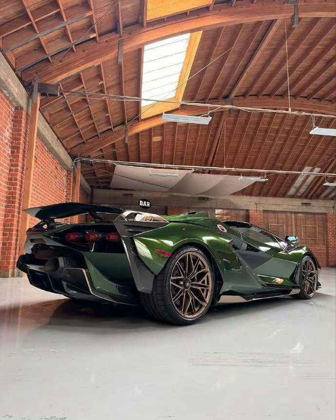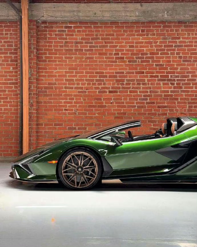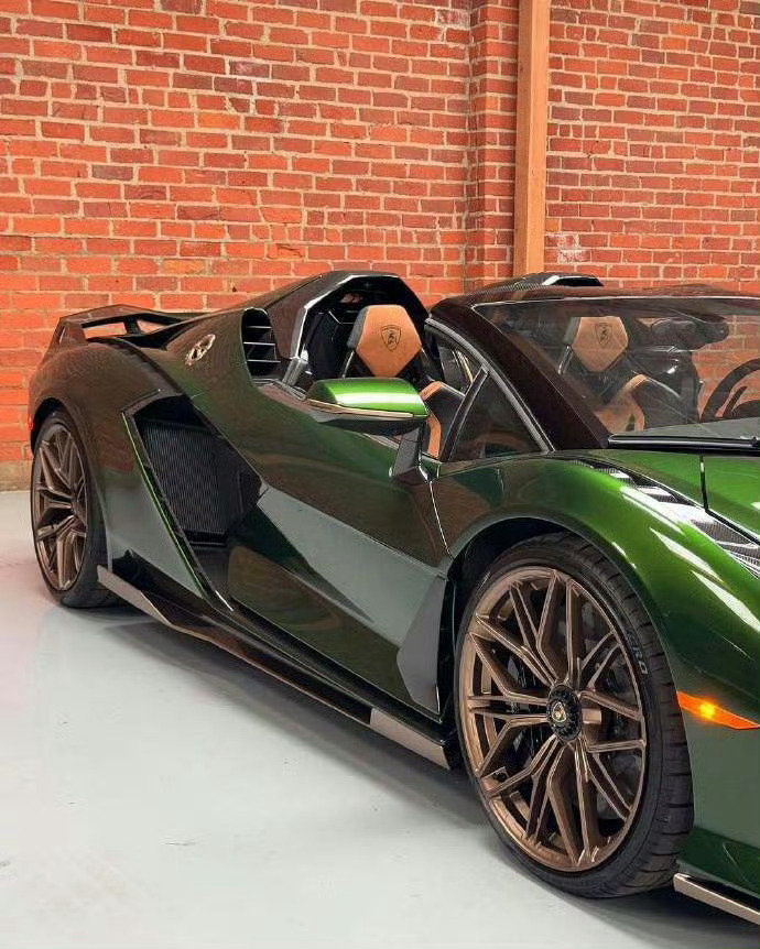 兰博基尼Sian Roadster,墨绿车身配金色轮毂,内饰碳纤与麂皮的碰撞,堪称超跑界的美学天花板~