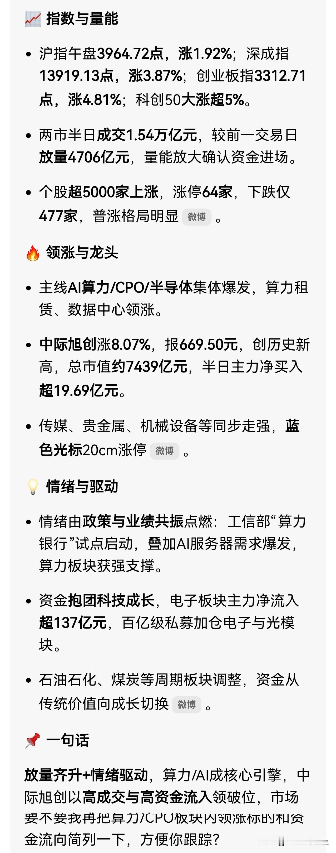 市场乐见美伊和谈!4月8日上午A股放量齐升+情绪驱动,算力/AI成核心引擎,中际