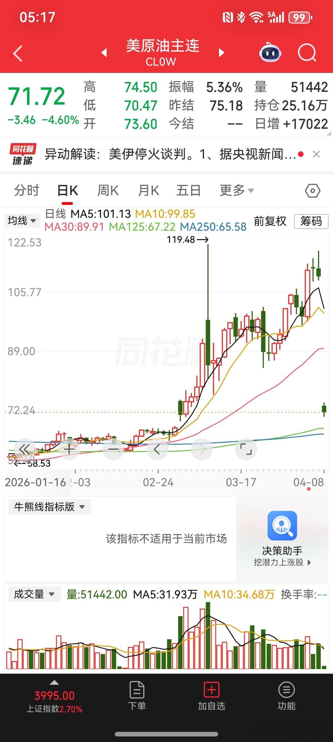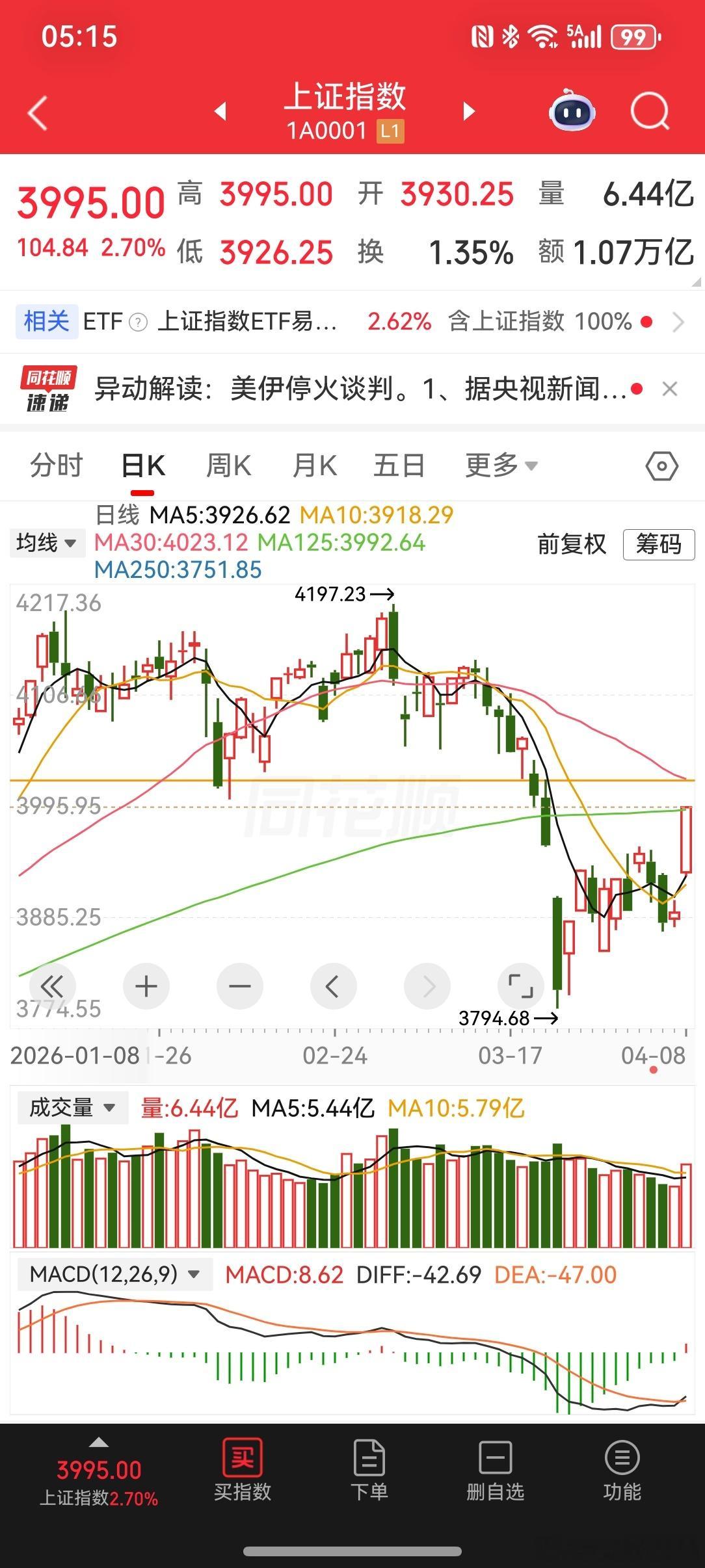 2026-4-8特朗普又一次画k线在最后关头,美伊达成停火两周协议。美原油大幅下降。美元指数下行,黄金大涨,大A也迎来久违的大涨。