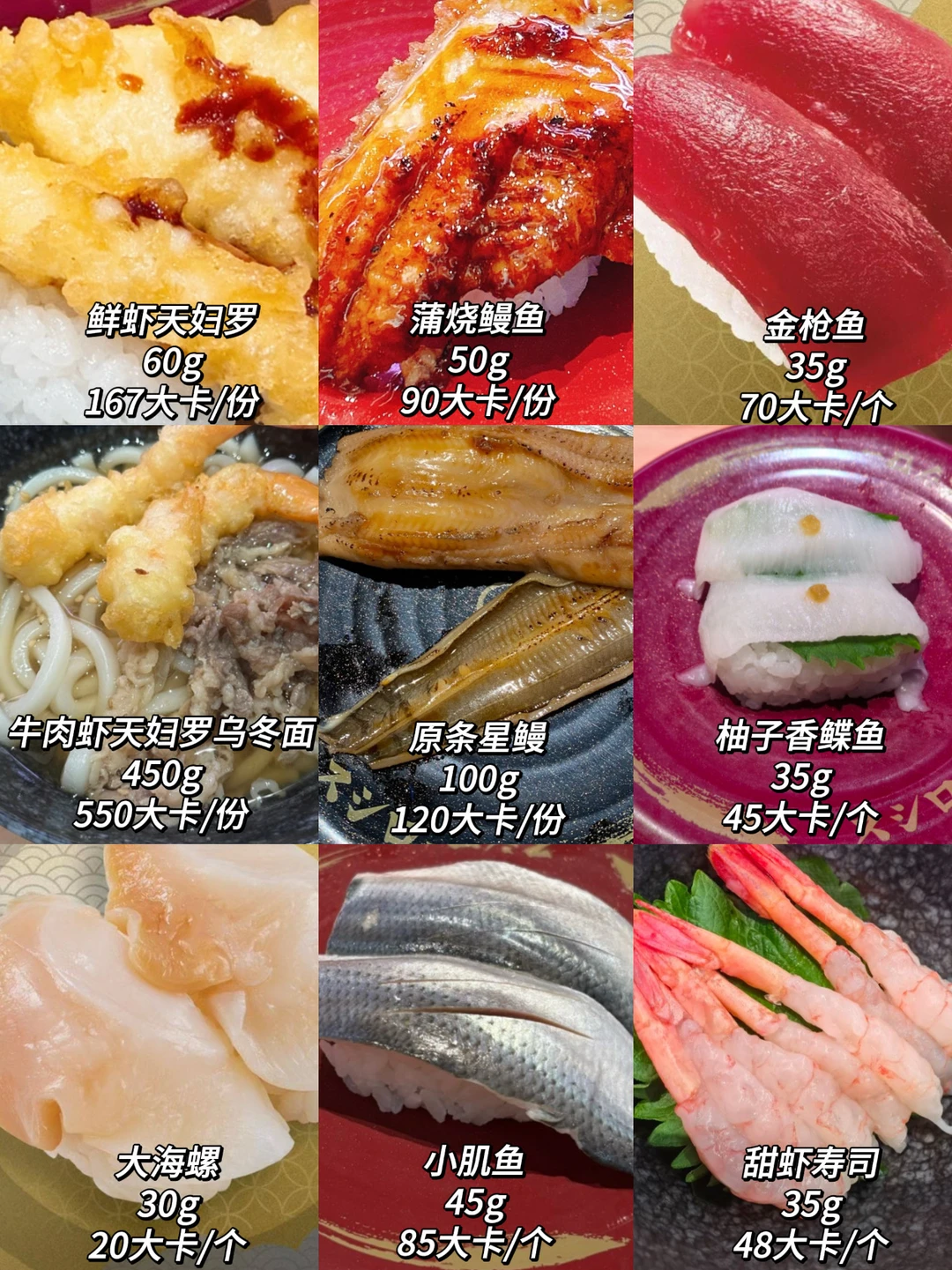 2️⃣高卡的天妇罗类,拉面乌冬面,芝士类的热量都不低这些能少吃就少吃,实在想吃可以浅尝一点。