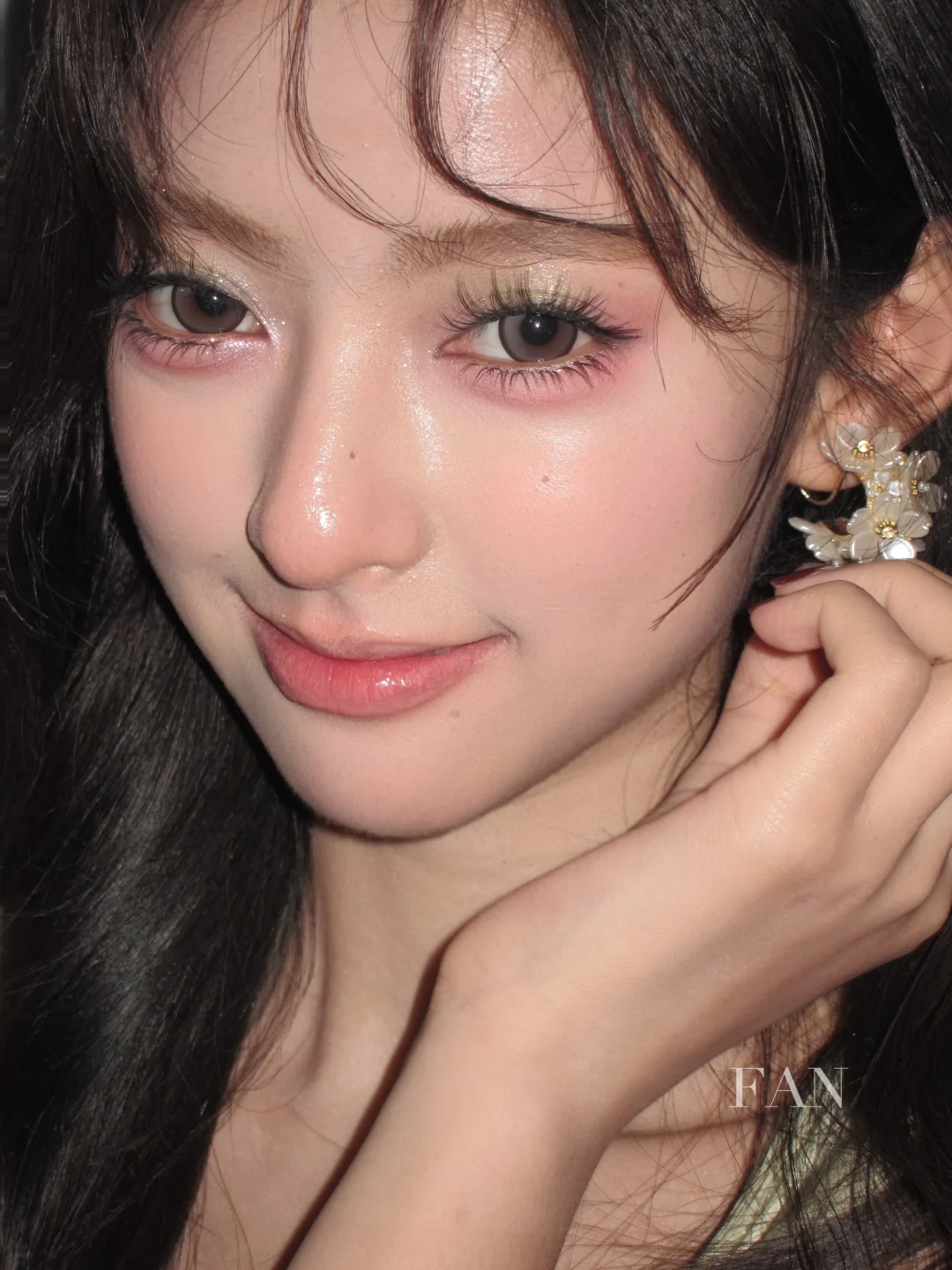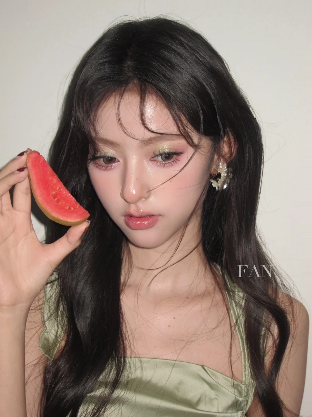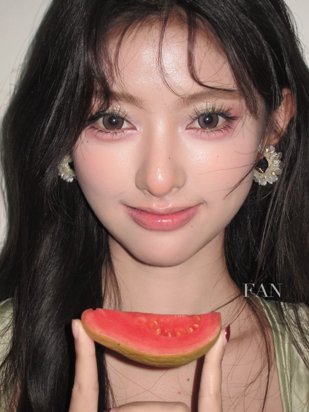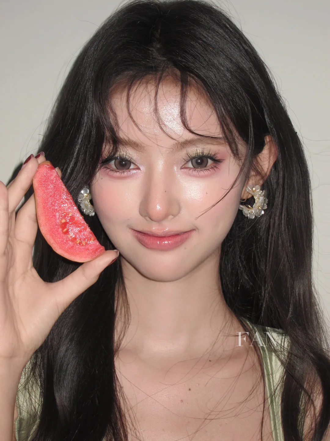 今天妆容的重点是清透的水光基底和果汁感的腮红与唇色,整体给人一种皮肤由内而外透出粉嫩水润的感觉,特别适合现在这个季节