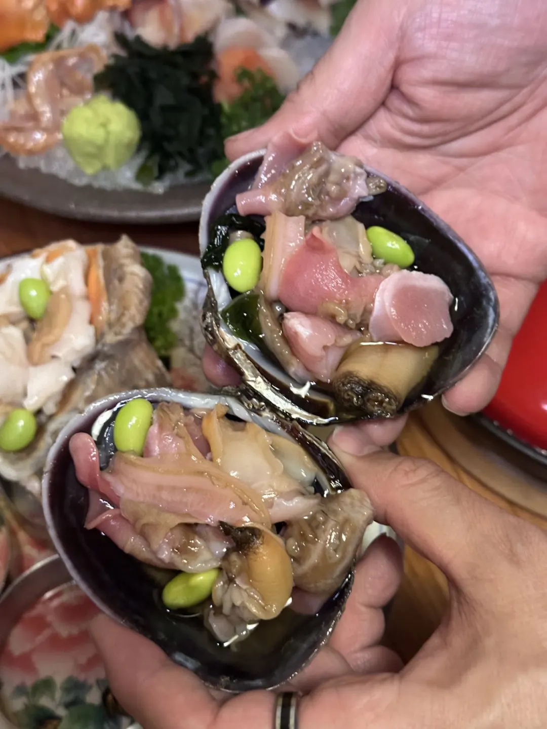 不得不说,料理的尽头是活贝啊!活海螺鲍鱼牛筋煲、刺身拼盘 活炸牡蛎🦪 一次吃到这么多贝类