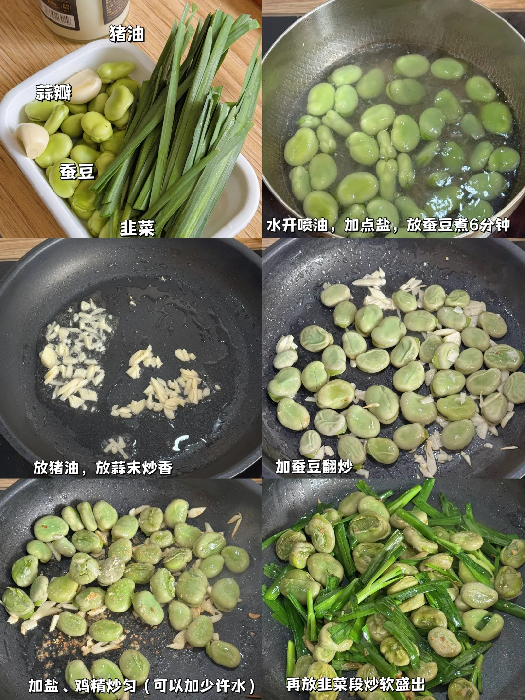 食材|新鲜蚕豆、韭菜、蒜瓣、猪油