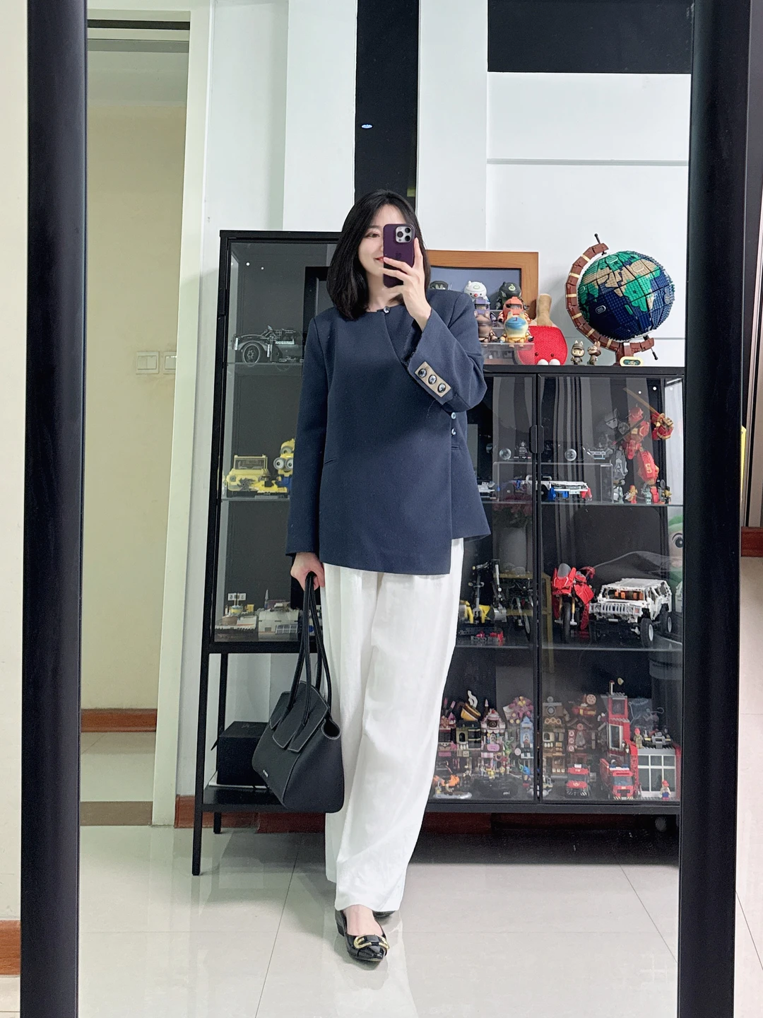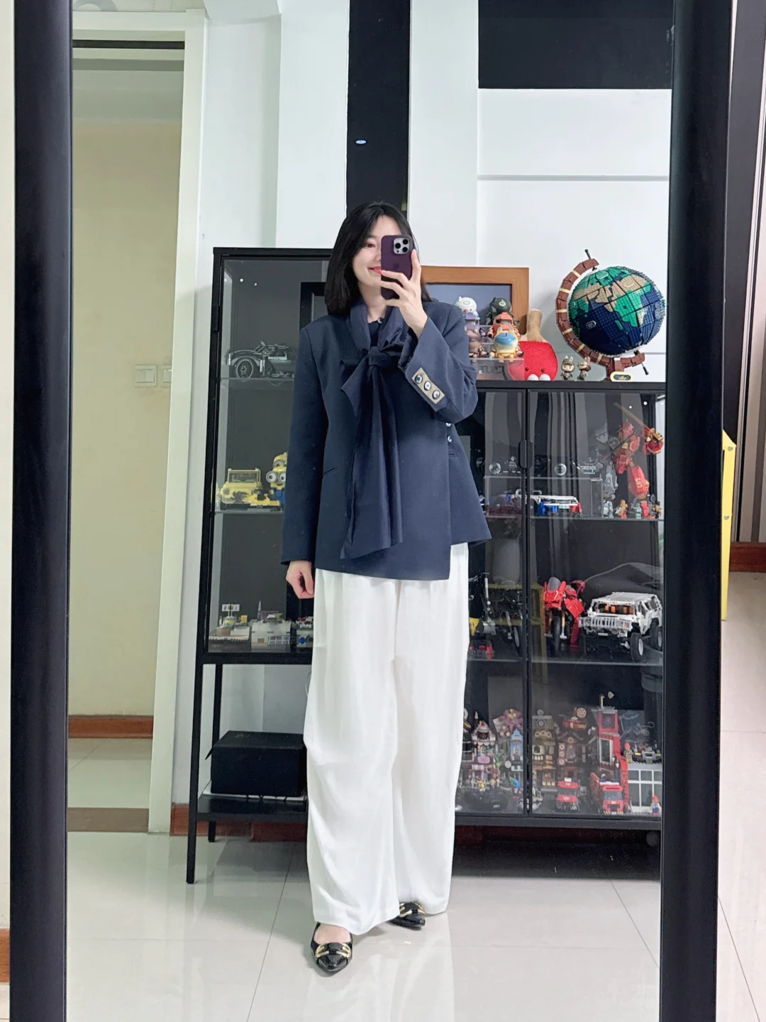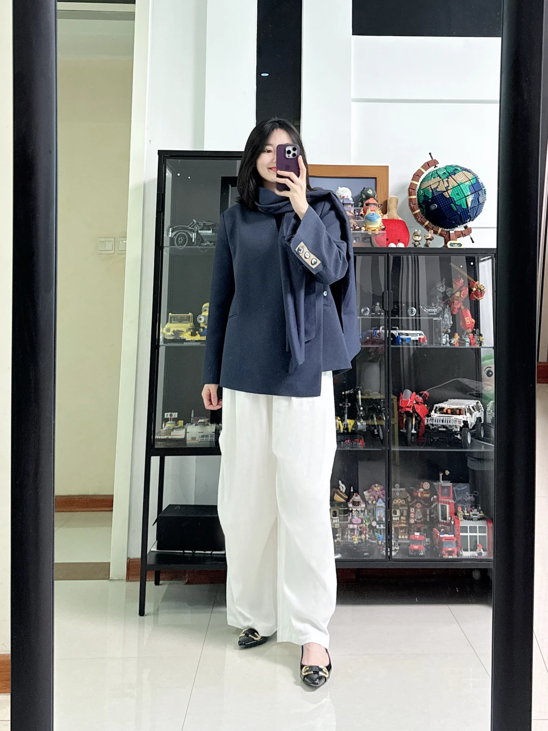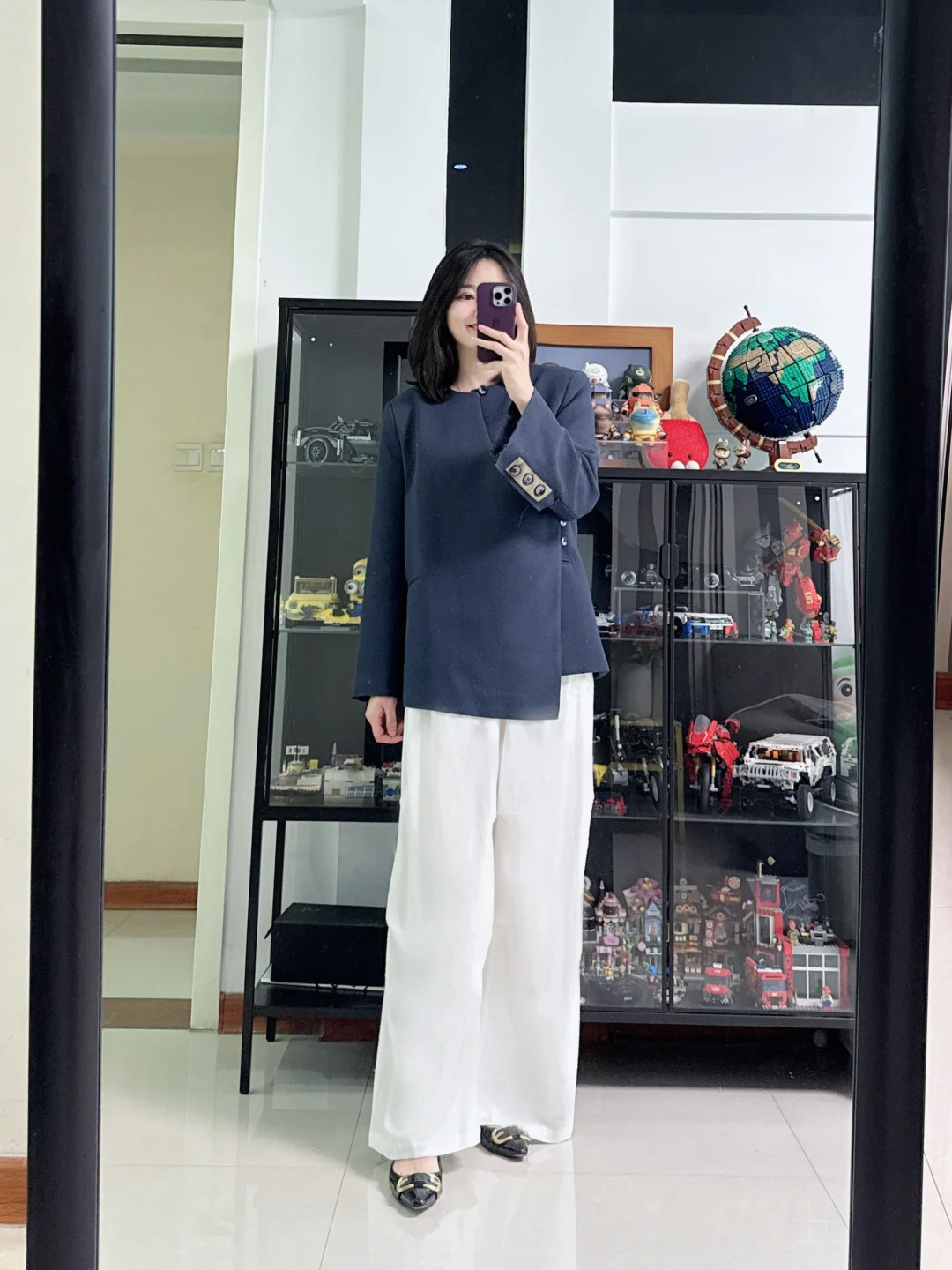 👩今日穿搭:有些别致的西装,很有高级感,搭配白色阔腿裤,轻熟职场穿搭,气场拉满~