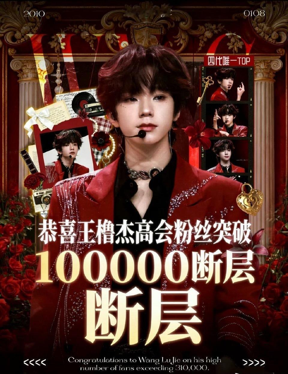 王橹杰高会粉丝数断层10w 恭喜!王橹杰高会粉丝数突破46万,四代唯一破4成员,