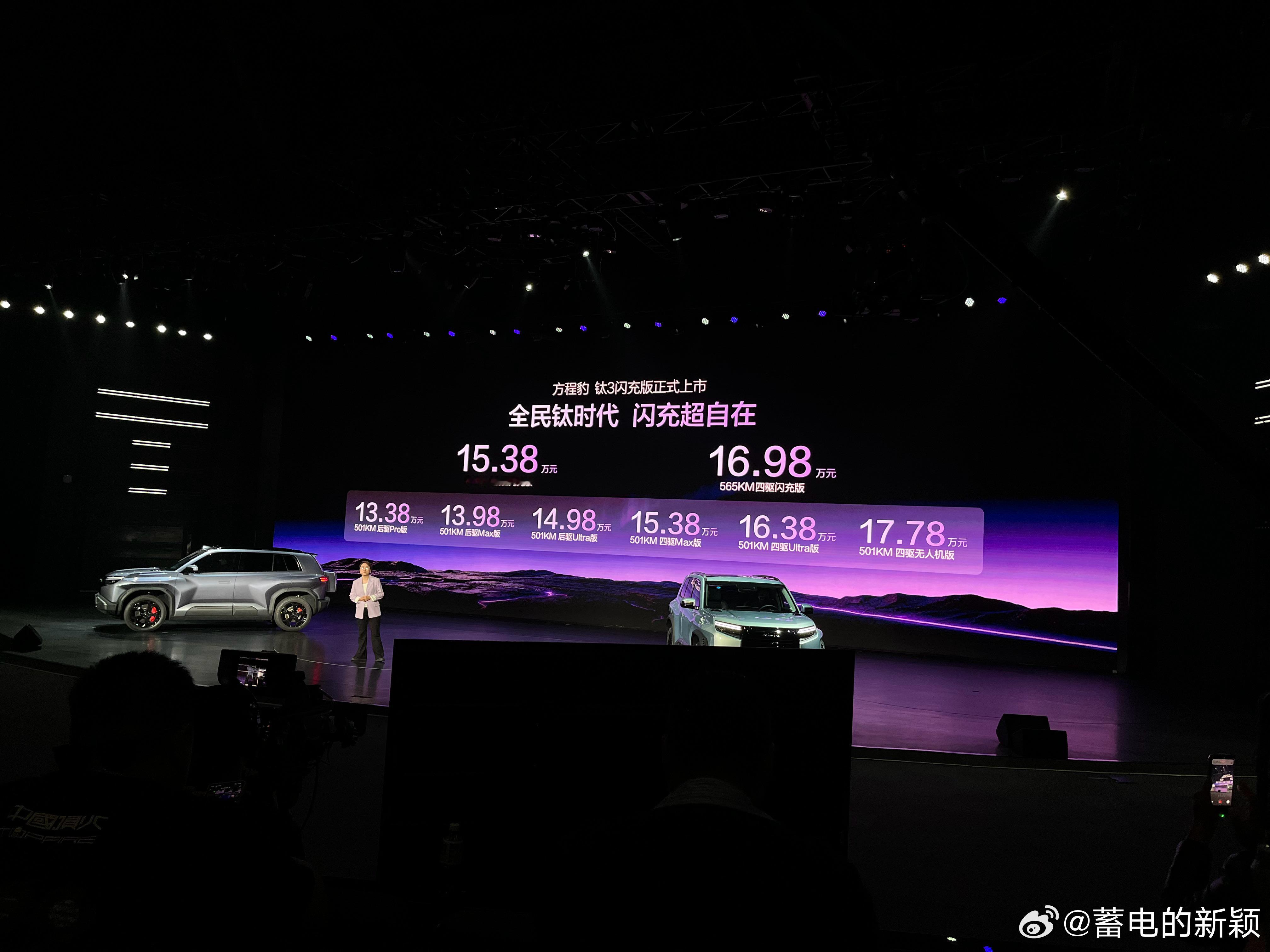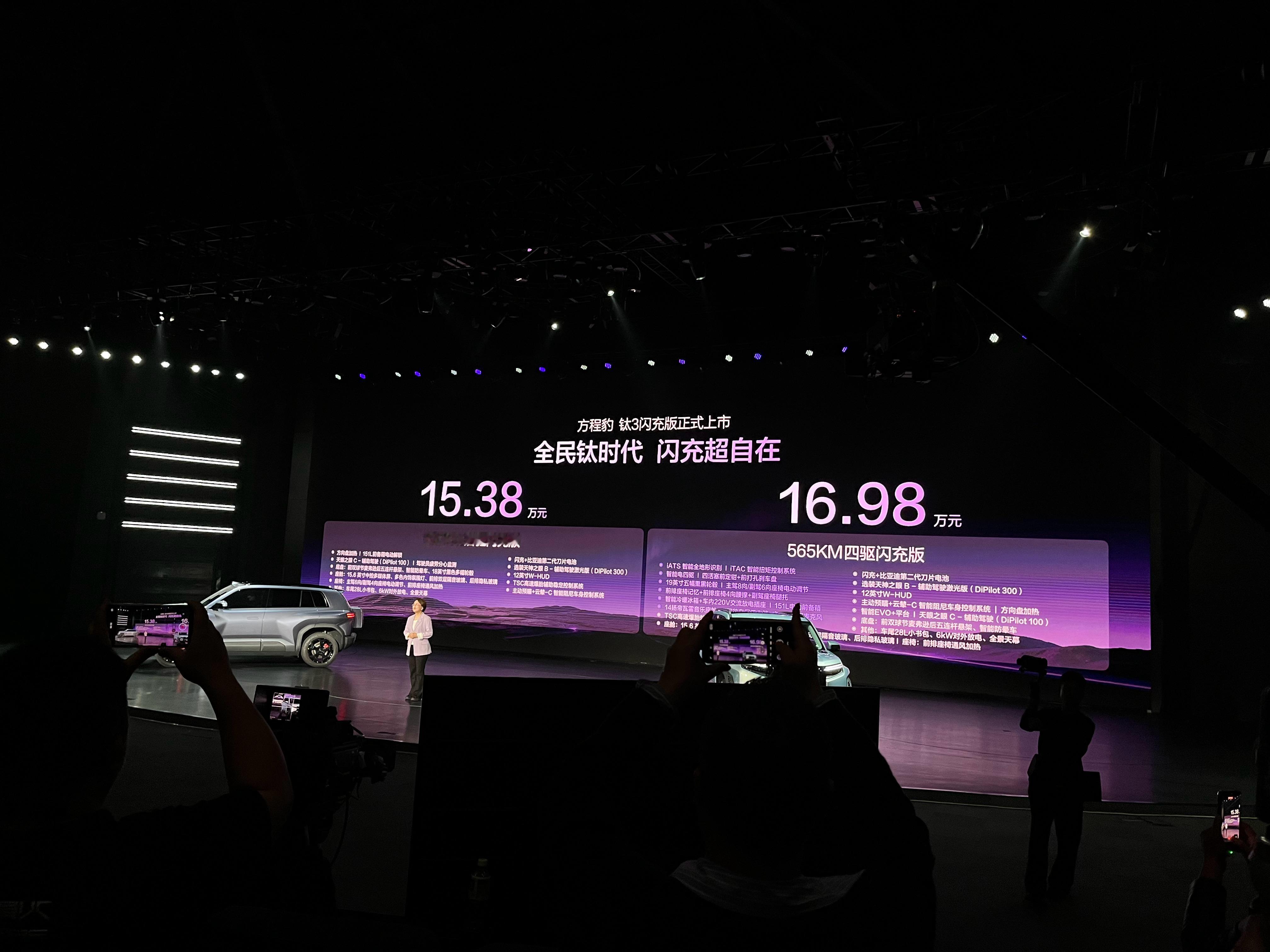 方程豹钛3闪充版今天正式上市!5大标配诚意满满!620km后驱闪充版15.38万元565km四驱闪充版16.98万元