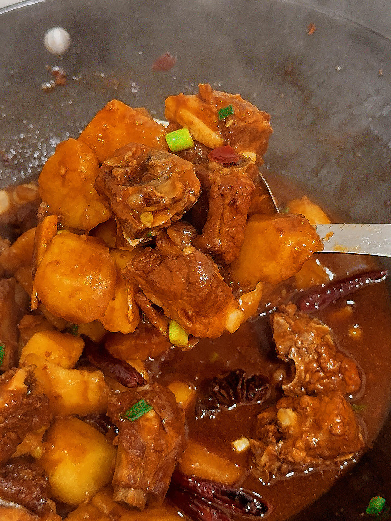土豆、排骨(不用复杂配料,这两样就够香,喜欢吃辣的可以多放干辣椒)