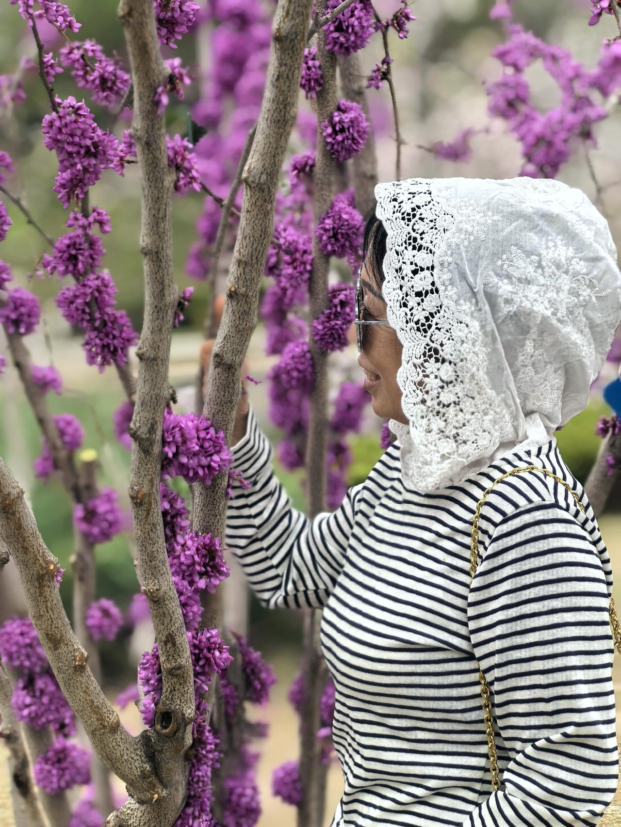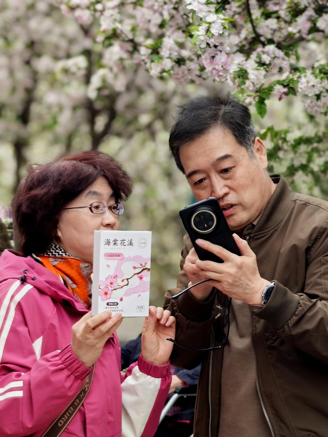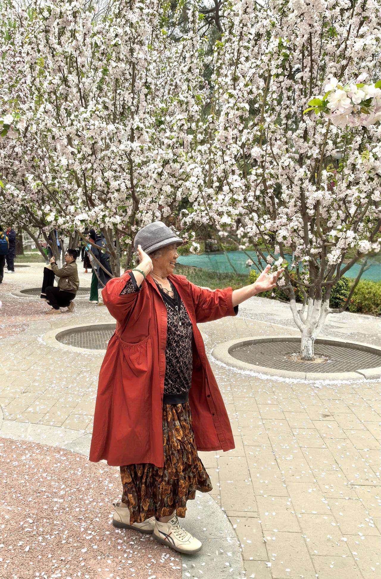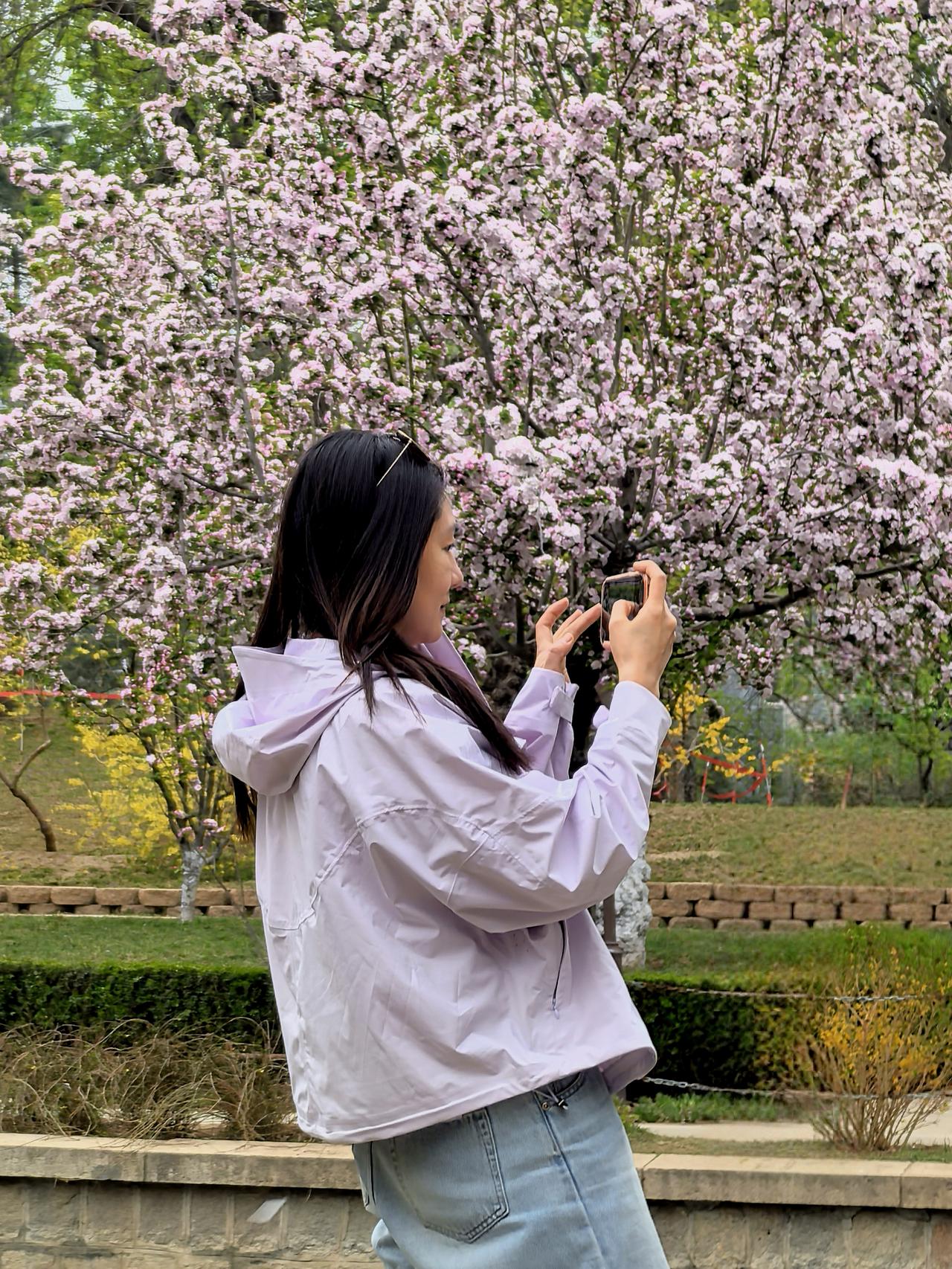 今天天气多云转阴,下午还下起了小雨。这样的天气加上又是下午,我以为北土城遗址公园的海棠花溪赏花、寻景、拍照的人应该不会很多,结果我的预期还是错了。赏花和拍照的人虽然没有摩肩擦踵,但也川流不息,随时随地都可以看见人们举着手机、相机对着花树拍照,让同伴帮助自己留下最美的倩影。