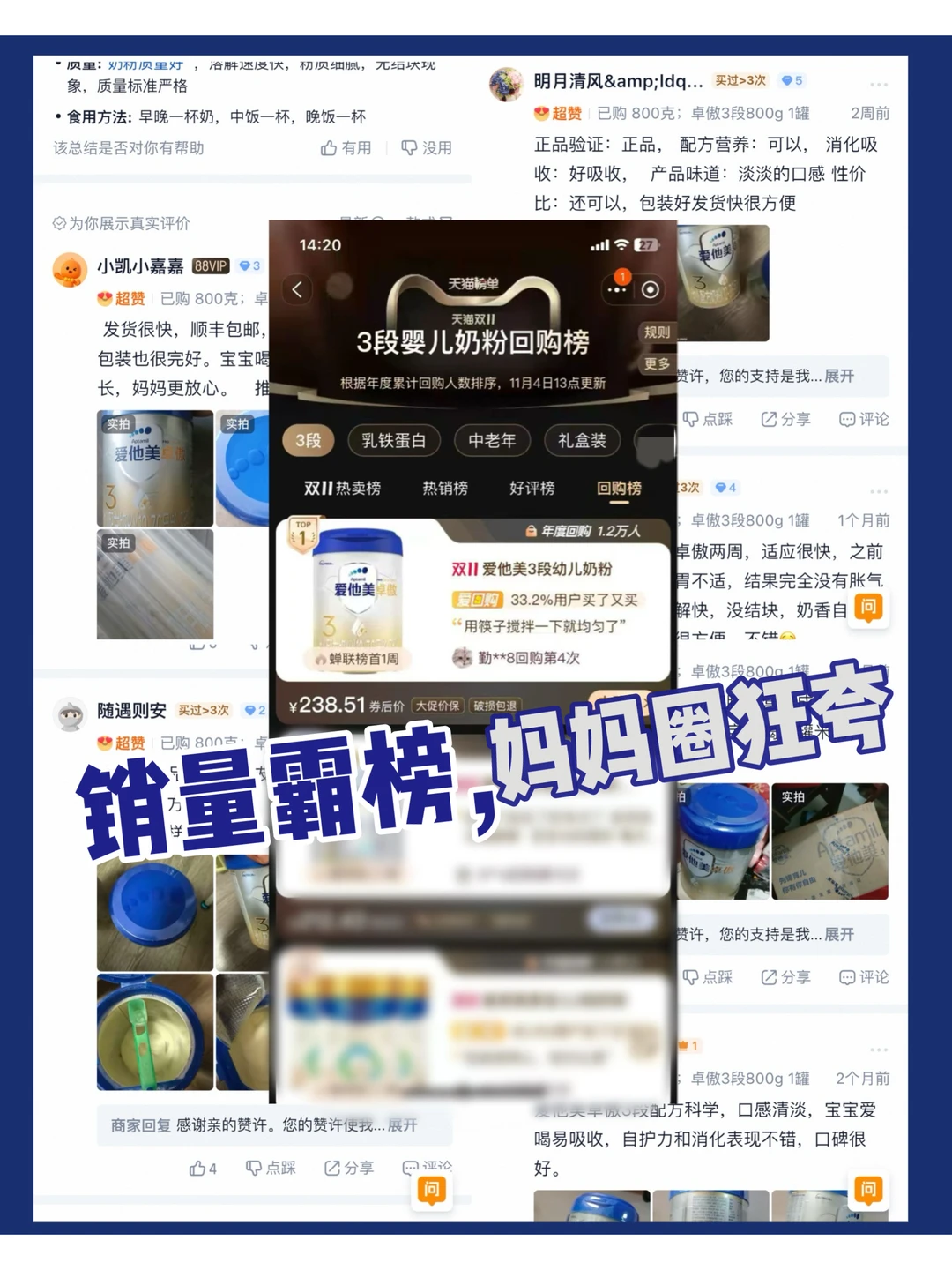 口碑上就更不用说,作为销冠级奶粉,更在电商榜单常年霸榜,全球销量突破了1亿罐,真实含量和口碑,直接给转奶奶粉选择的安全感拉满!