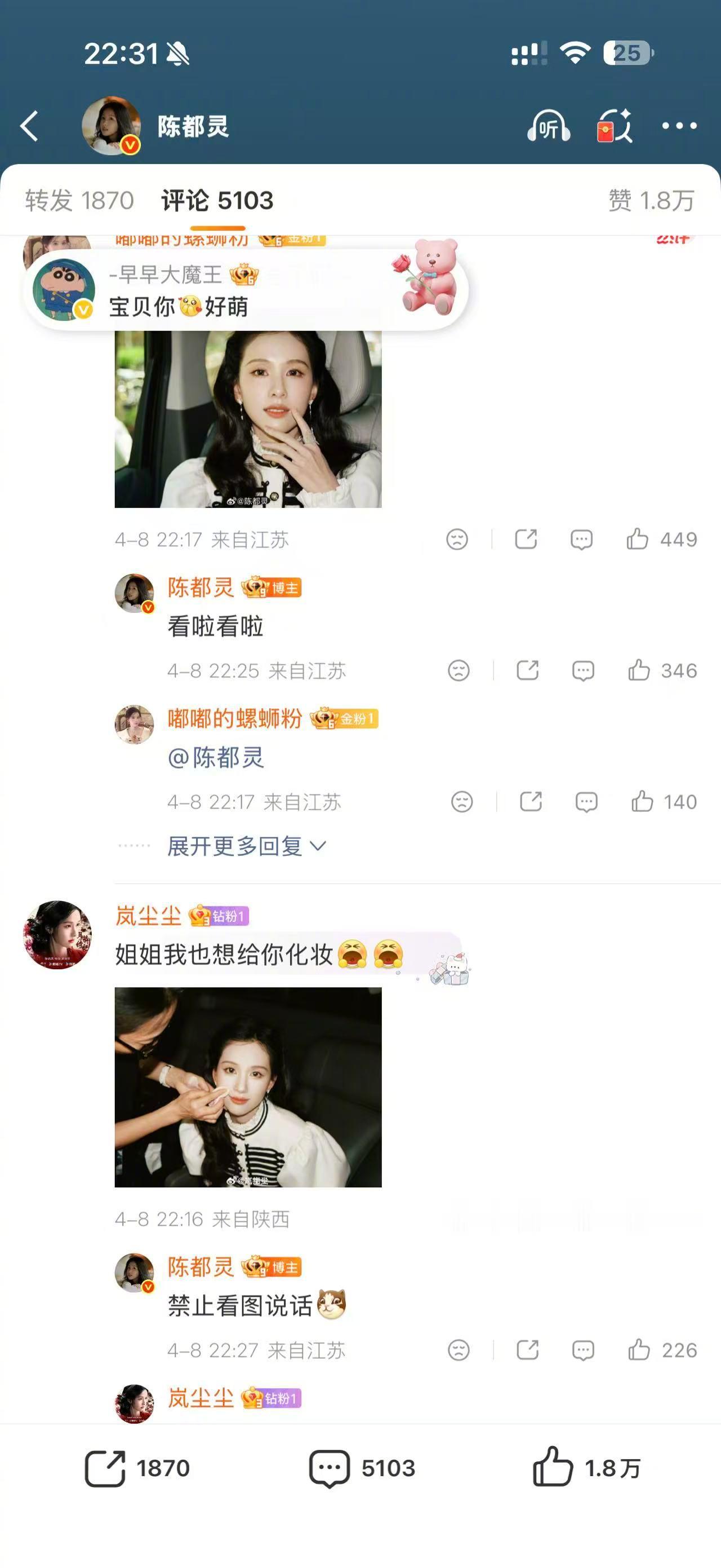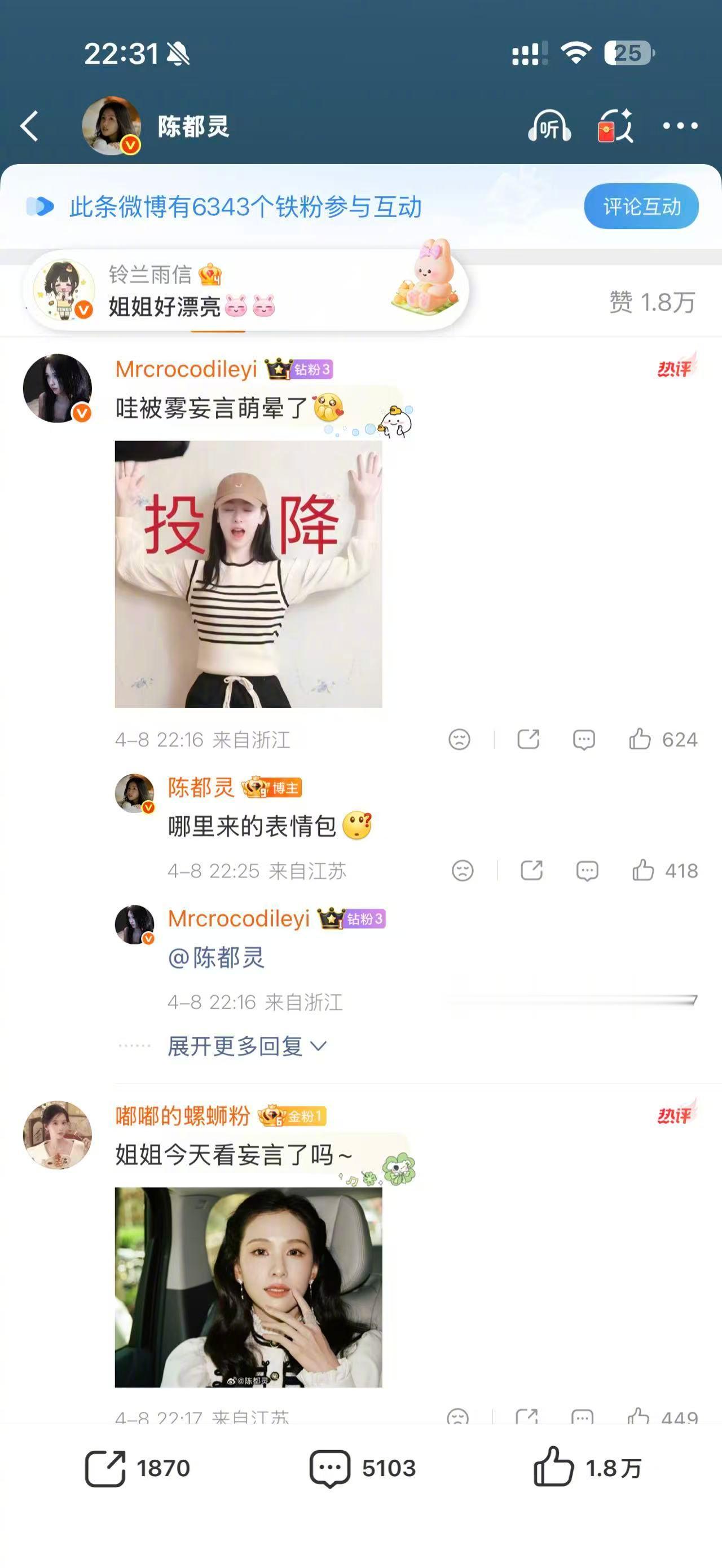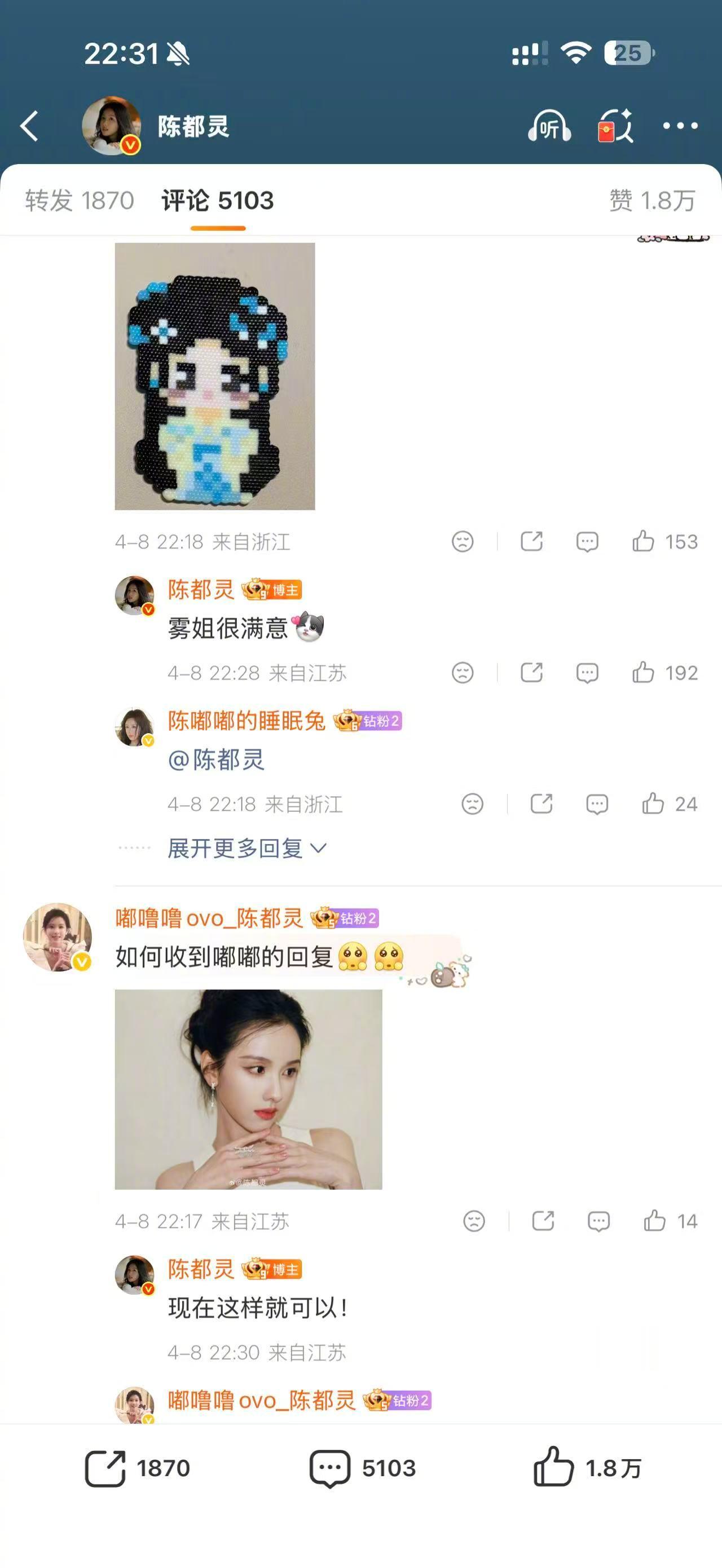 陈都灵活跃的像个高仿号陈都灵回复粉丝二创 陈都灵这两天疯狂在翻牌粉丝的二创,她下