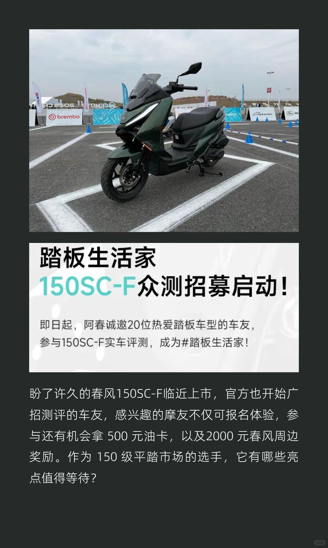 春风平踏150SC-F上市在即众测招募中。春风平踏150SC-F即将上市,众测招