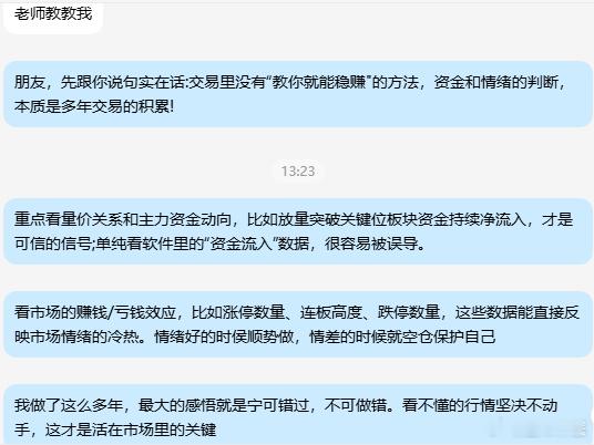 做交易这么久,开始一直凭着直觉在市场里横冲直撞,以为 K 线和指标能给出答案,总有人问怎么判断走势。我以前也曾迷信技术指标,可后来才明白,指标会骗人,资金和市场结构不会。判断方向的核心从来不是花哨的公式,而是三点:资金流向、情绪周期、关键价位。看资金不能只信软件里的 “流入” 数据,要盯着量价关系和主力动向,放量突破关键位、板块持续净流入,才是值得相信的信号。看情绪也不难,涨停数量、连板高度、跌停家数,这些数据直白地写着市场的冷热,情绪好时顺势而为,情绪差时空仓保命,才是活下去的底气。