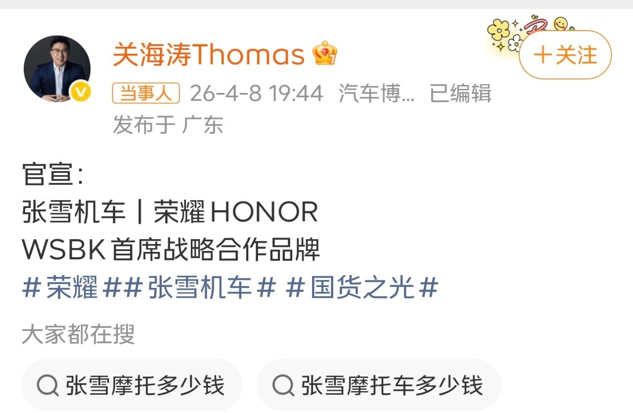 荣耀张雪机车战略合作荣耀感觉今年宣发愈发上道了,代言人选的很成功,这回张雪机车刚