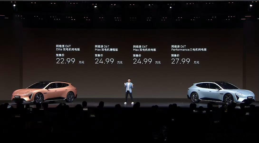 阿维塔06T今晚也预售了,这台车定位「智美全场景运动轿车」,全系标配太行分布式电驱,同样搭载华为乾崑896线激光雷达,辅以乾崑智驾ADS4,同样也标配了鸿蒙座舱和MoLA大模型,后备箱空间517L,后排座椅可以一键放倒,提供后驱双电机和四驱三电机版本,Elite双电机纯电版预售价22.99万起,喜欢吗