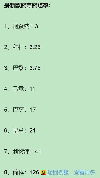 欧冠早变天了。以前是皇萨仁的圆桌会议,现在是谁够硬谁上桌。阿森纳的纪律、拜仁的底蕴、巴黎的青春、马竞的命硬——这才是新贵四象限。那些指着名气买赔率的老哥,该醒醒了:足球不是比户口本,是比谁能在第91分钟还站得住。今晚这球看得我,既心疼那些被低估的狠角色,又兴奋——新时代的刀,已经出鞘了。欧冠最新夺冠赔率:阿森纳居首拜仁第二 利物浦葡体靠后