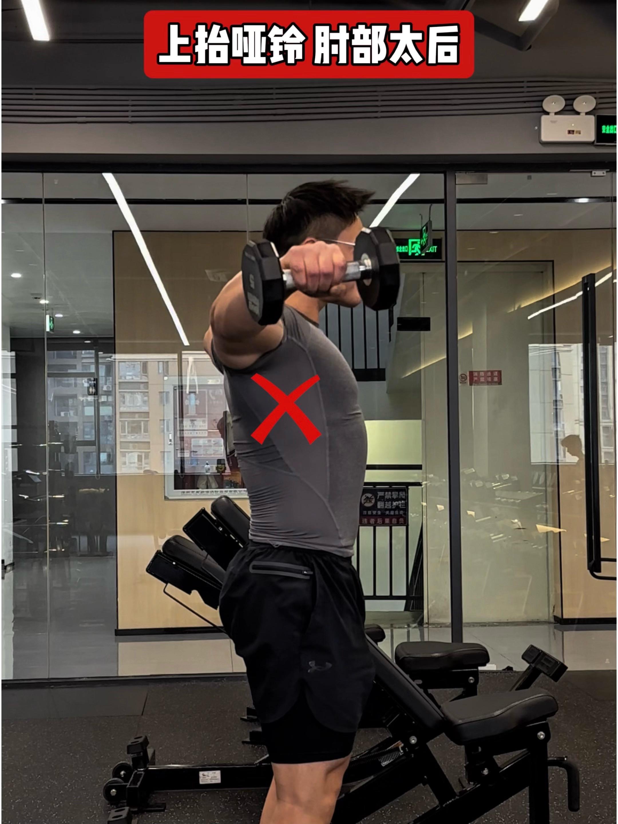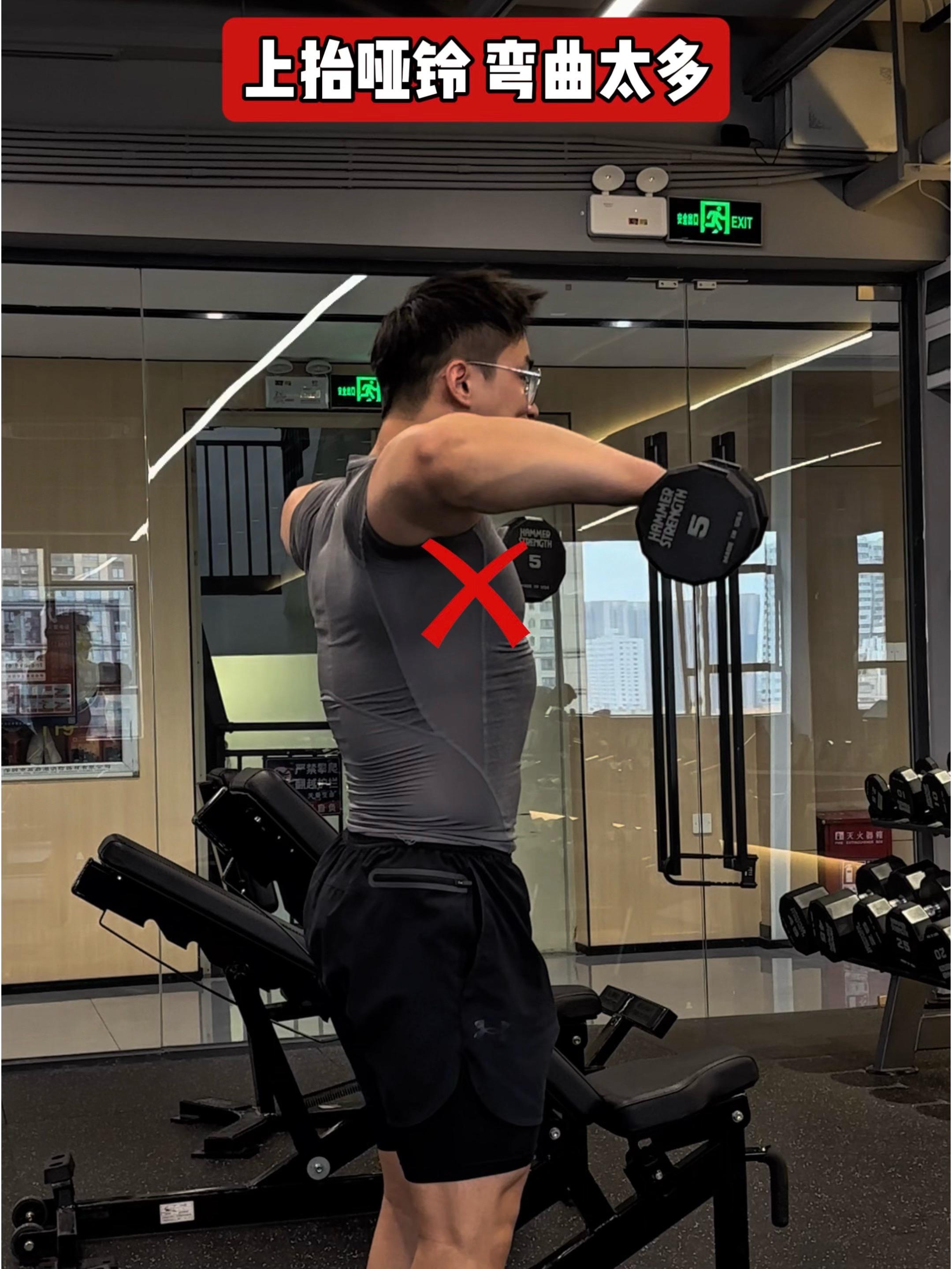问题三:上抬哑铃,弯曲太多❌