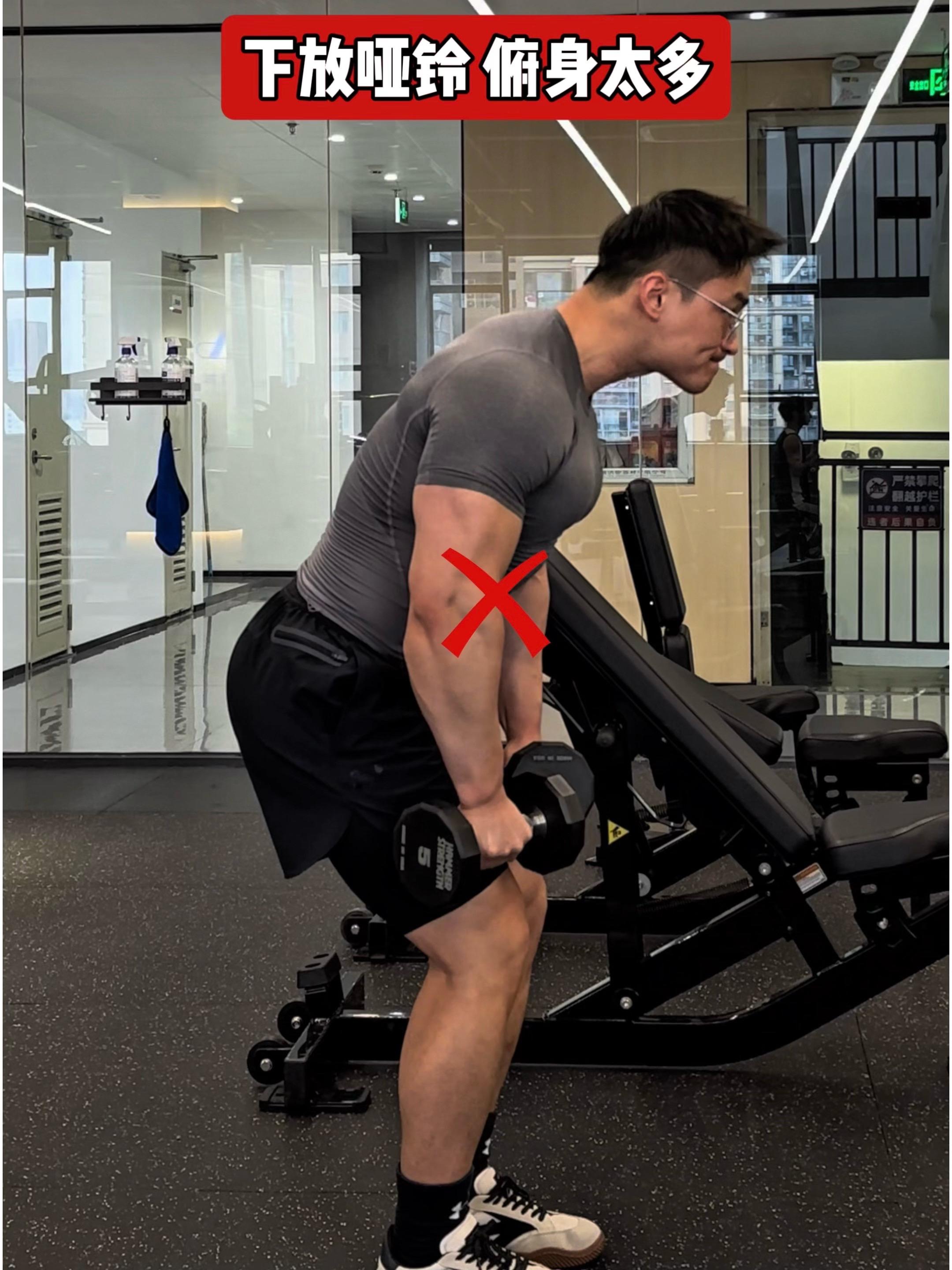问题六:下放哑铃,俯身太多❌