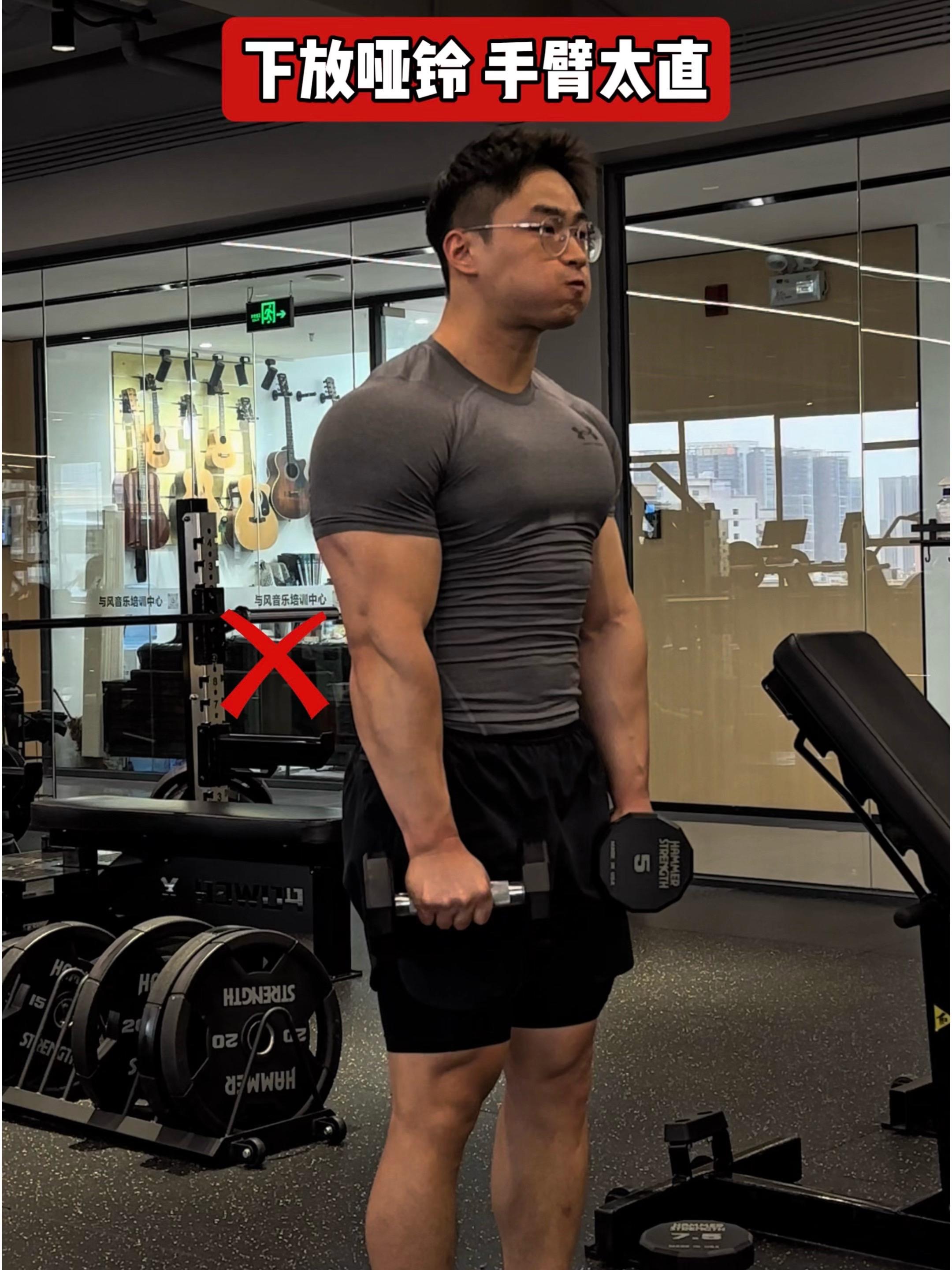 问题四:下放哑铃,手臂太直❌