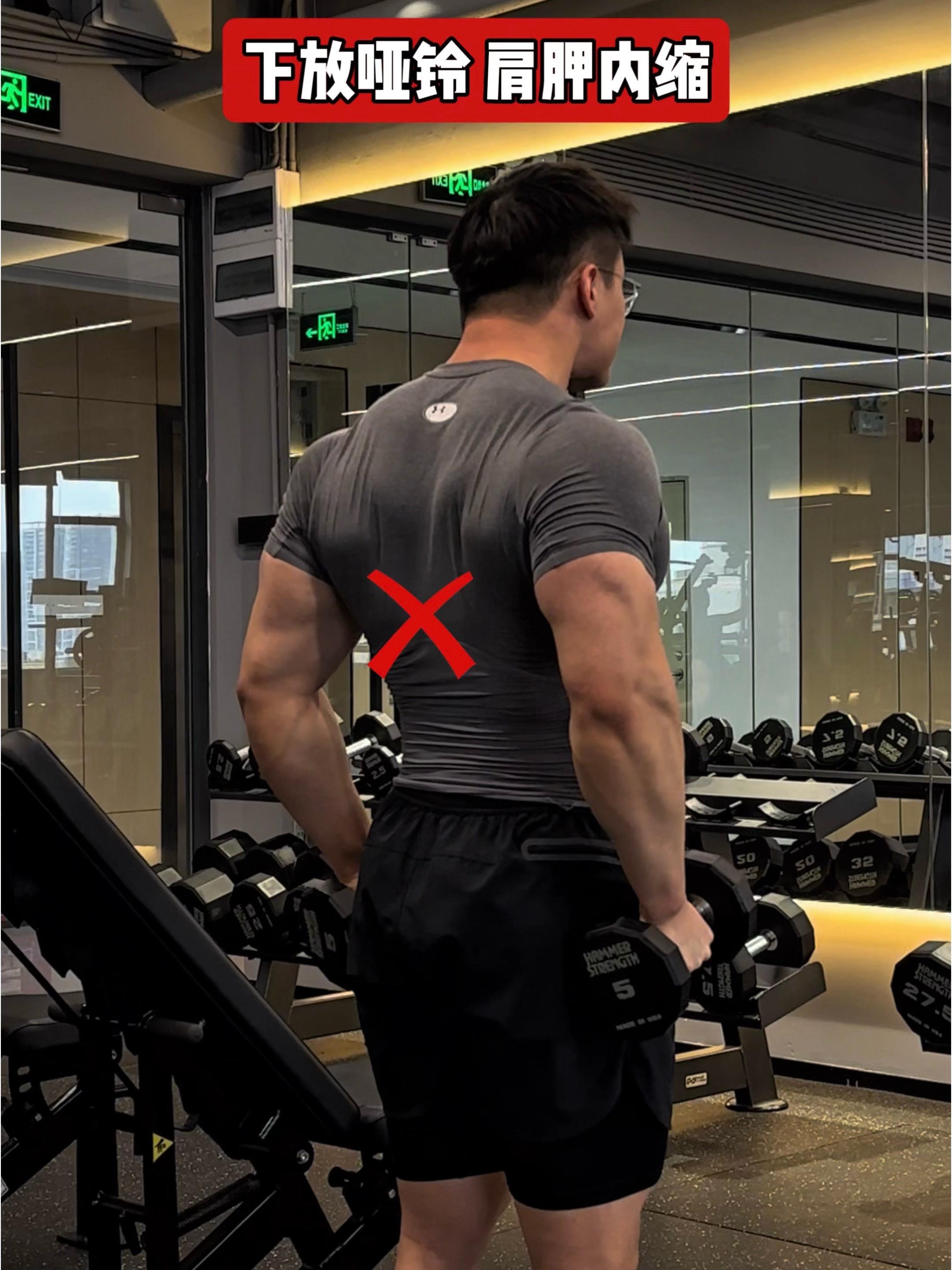 问题二:下放哑铃,肩胛内缩❌