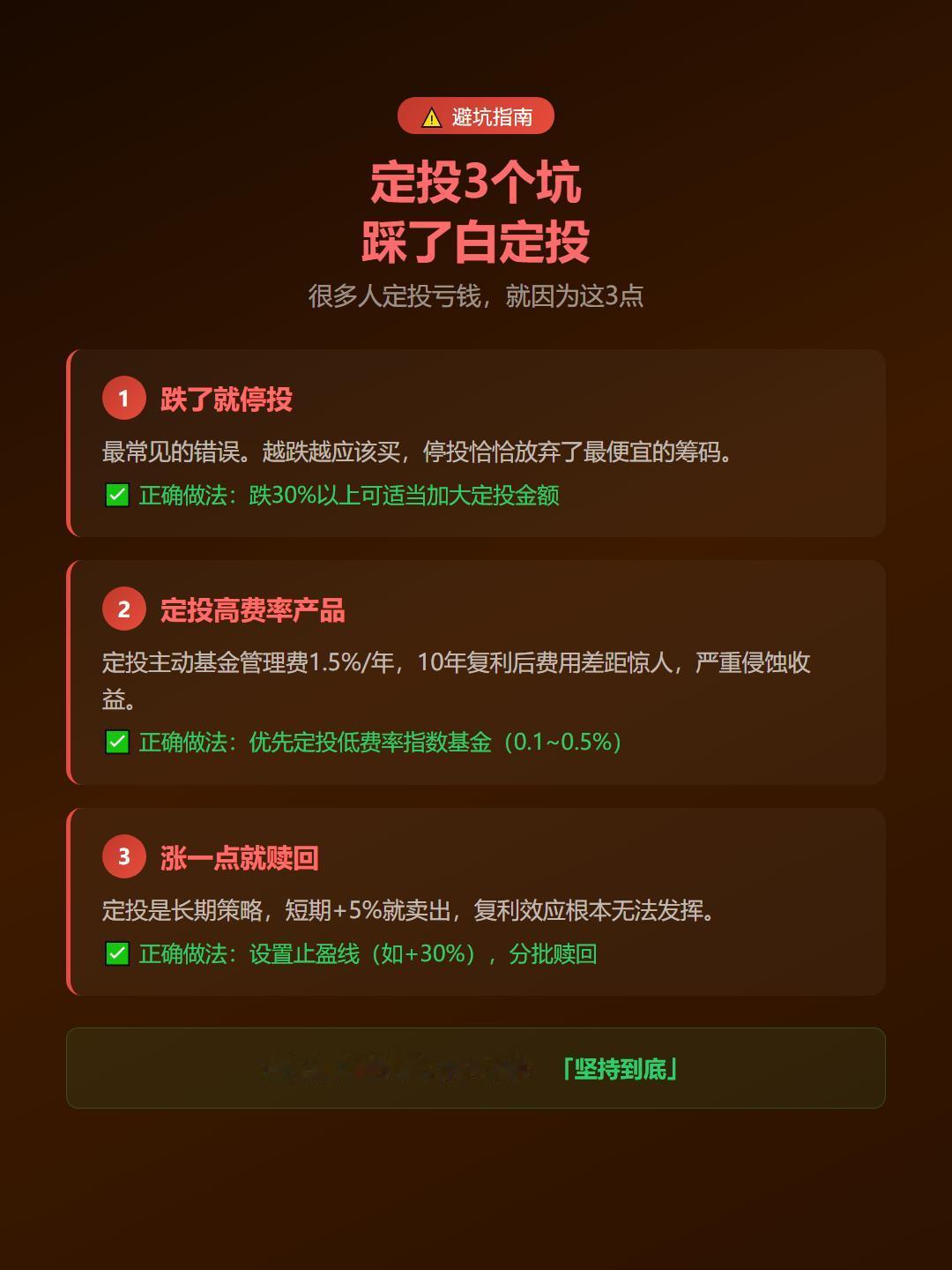 ⚠️ 定投3个坑,别踩:
