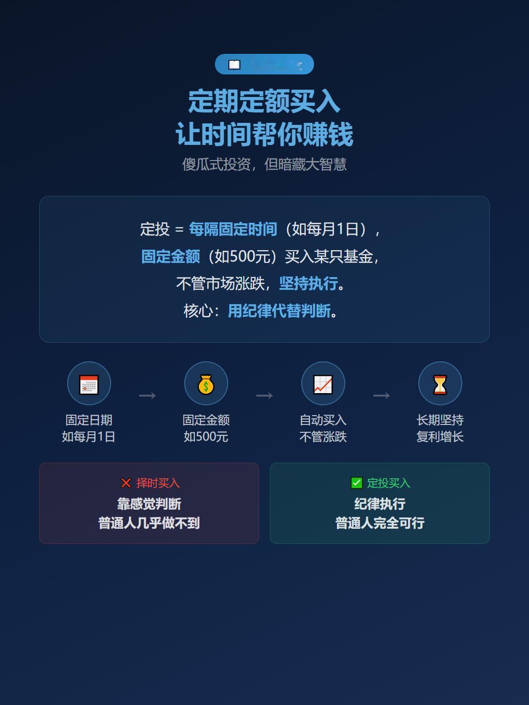 💡 定投成功公式:宽基指数基金 + 固定执行 + 坚持到底