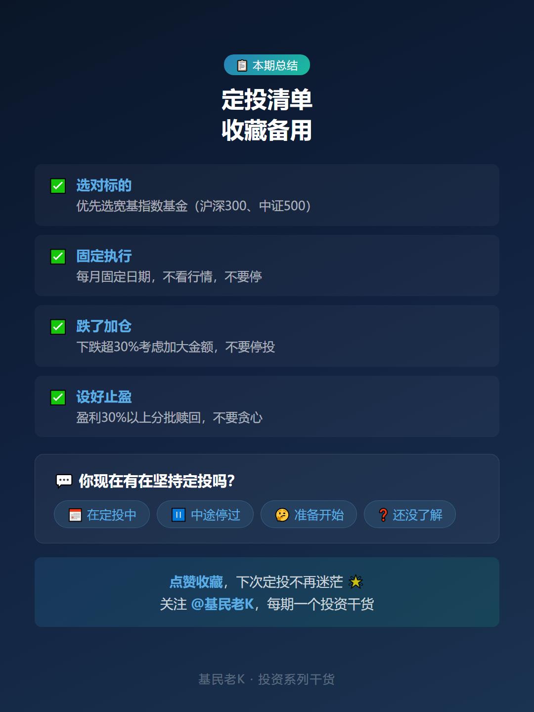 定投 基金定投 指数基金 理财干货 基民老K 定投策略 理财入门