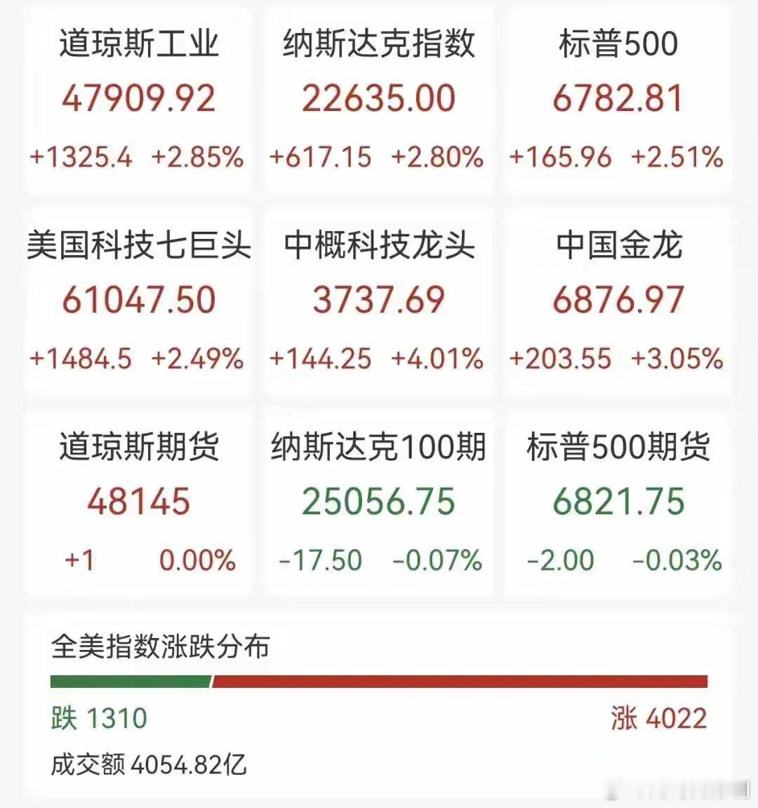 道指狂拉1300点,芯片+存储全线疯涨,原油暴跌16%又反转隔夜全球市场彻底疯狂股市全线爆拉- 美股三大指数均大涨超2.5%,道指狂飙1325点,标普+纳指6连涨- 恐慌指数VIX跌至近6周新低,市场情绪大逆转- 科技股集体起飞:英特尔暴涨超11%,Meta、谷歌同步大涨- 芯片股全员涨停潮:费城半导体指数30只个股全线收涨- 存储股创历史新高:闪迪、西部数据、美光全线大涨- 中概股走强:金龙指数涨超3%,小马智行、富途涨超11% 商品巨震反转- 原油一夜腰斩式暴跌:WTI狂跌16.4%,布油大跌13.3%- 亚太早盘直接反弹超3%,走势极端割裂- 金银先涨后跳水,短线波动剧烈 突发消息刷屏- 美联储纪要:中东冲突带来加息/降息双向风险,态度摇摆- 霍尔木兹海峡再度关闭,油轮紧急180°掉头返航- 特朗普放话:要和伊朗合伙管理海峡,预计10日开启谈判一边是科技股大牛市,一边是地缘突发暴击行情一天走完几个月的波动,接下来变数拉满