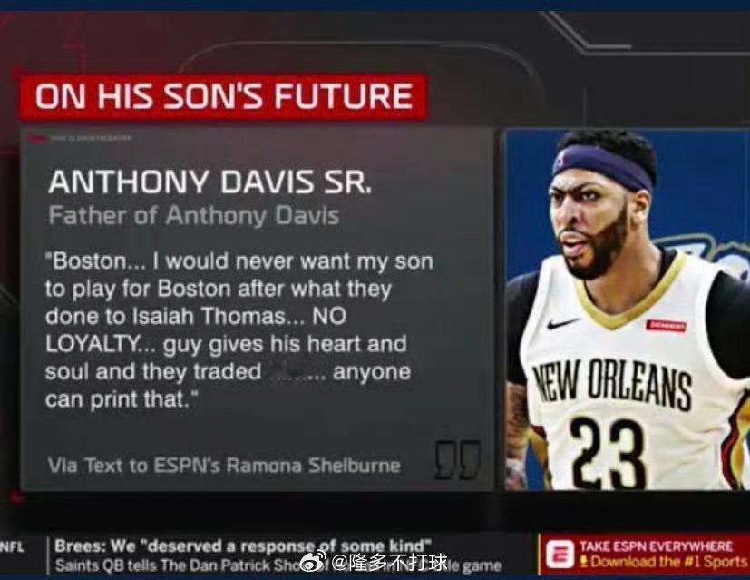 然而,戴维斯的亲爹却公开表态,通过短信发给ESPN记者拉莫娜·谢尔本:
