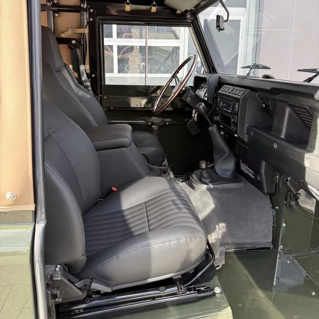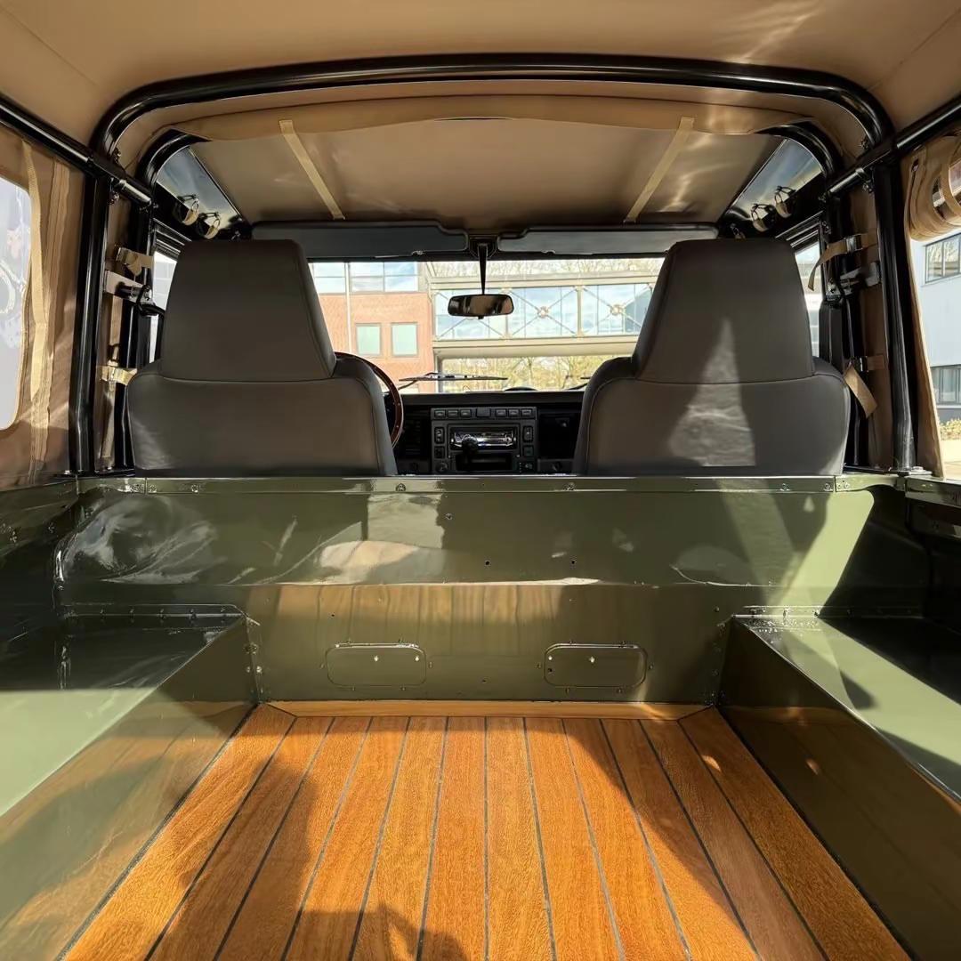 1999年的路虎 Defender 110,正处于品牌由纯粹工具属性迈向多元化之前的关键阶段。彼时的Defender,仍然坚持非承载式车身与机械四驱结构,是全球复杂地形中最值得信赖的“工作伙伴”。这台车在2023年由荷兰专业机构完成整备翻新,以深橄榄绿色车身搭配棕色软顶,既保留原始野性,也多了几分复古审美的克制表达。动力方面,其搭载一台2.5升(约2500毫升)涡轮增压柴油直列五缸发动机,匹配五速手动变速箱,配合中央差速锁与Salisbury后桥,构建出一套极其纯粹且耐用的四驱系统。底盘部分升级了升高悬架与Old Man Emu减震器,并搭配16英寸钢制轮圈与BFGoodrich全地形轮胎,越野能力在今天依旧不容小觑。车内则在保留功能性的基础上适度现代化,灰色真皮加热座椅、电动车窗与蓝牙音响的加入,让它不再只是“硬派工具”。在那个电子系统尚未主导驾驶体验的年代,Defender 110代表的是一种更直接的人车关系——它或许不精致,却真实、可靠,并始终指向远方。路虎卫士110 经典情怀老车 汽车知识分享 汽车人共创计划