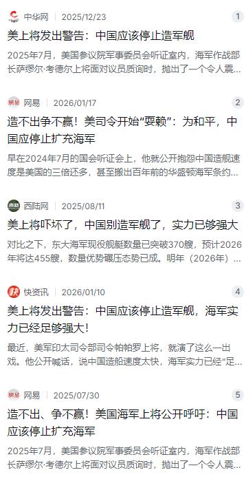 要求中国停止造军舰,就像习惯了百米冲刺的选手,突然对正在稳步慢跑的人说“你跑太快了不公平”。这种逻辑本身就说不通,因为赛道不一样,目标也不一样。