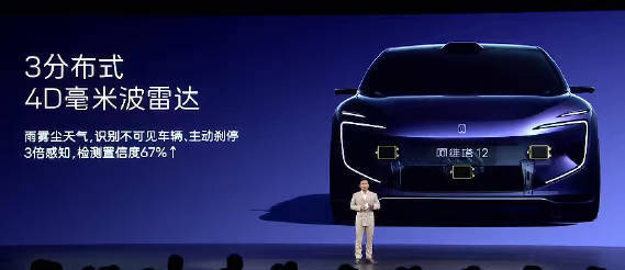 新阿维塔12搭载的感知硬件相当强悍:1颗全球量产最高的896线激光雷达,3颗4D毫米波雷达,11颗高清摄像头,12个超声波雷达,总共32个智能传感器。这套系统能在120米外识别14厘米高障碍物,让车辆在夜间、高速、逆光、雨雾等复杂环境中,拥有更早的预判能力。