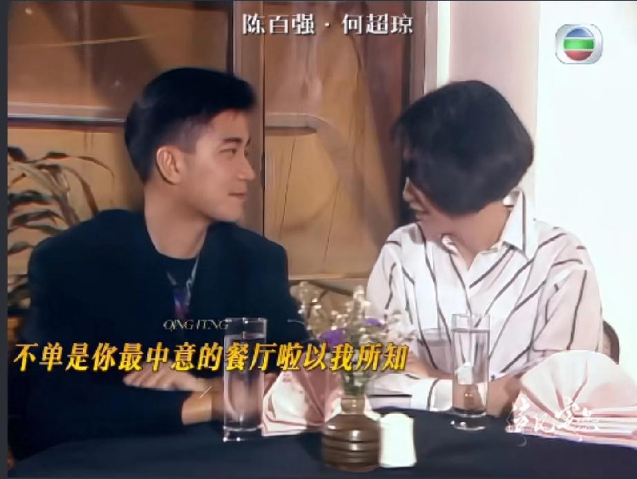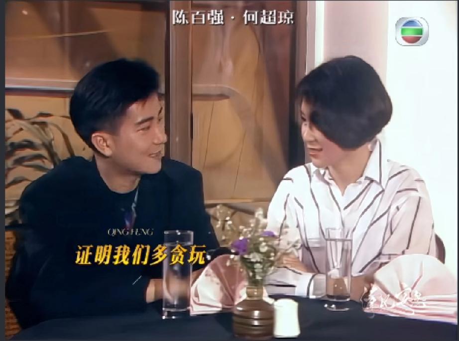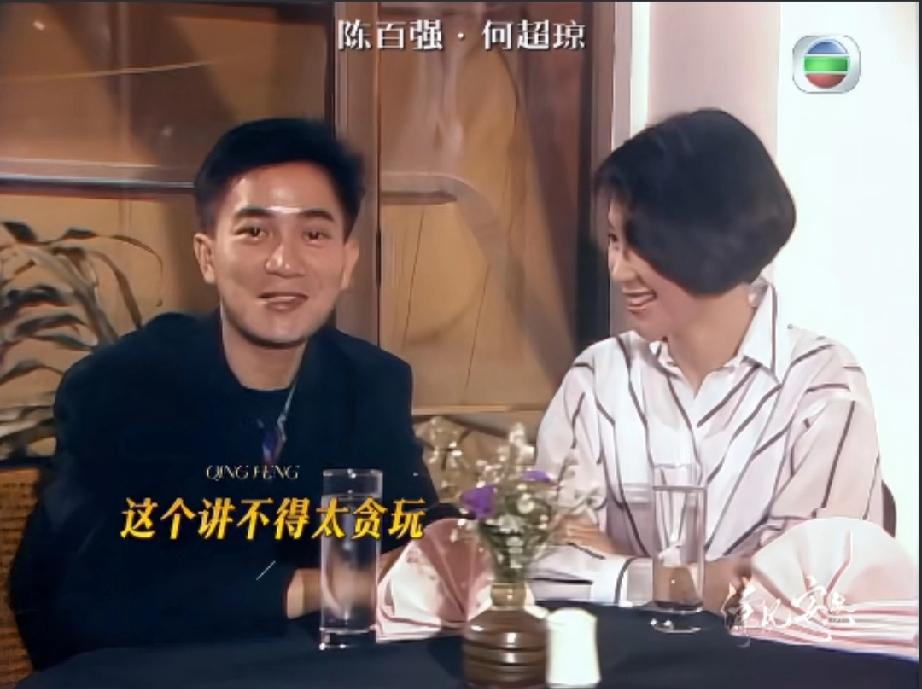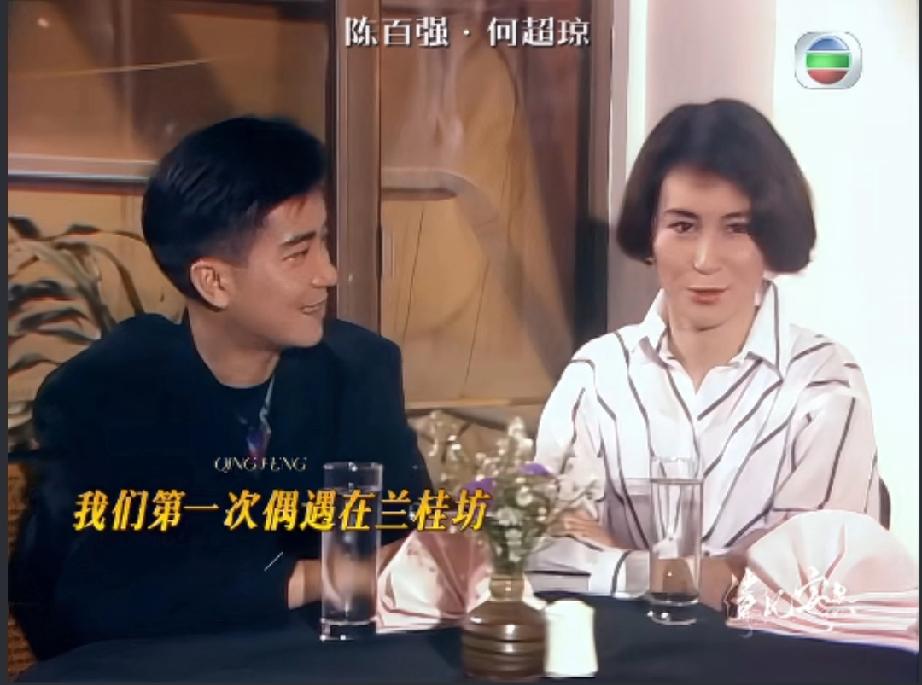 陈百强一直聆听,到这里才温柔提醒她,是“偶遇”。听到何超琼说在兰桂坊偶遇是贪玩,他又出声纠正,说讲不得,哈哈!