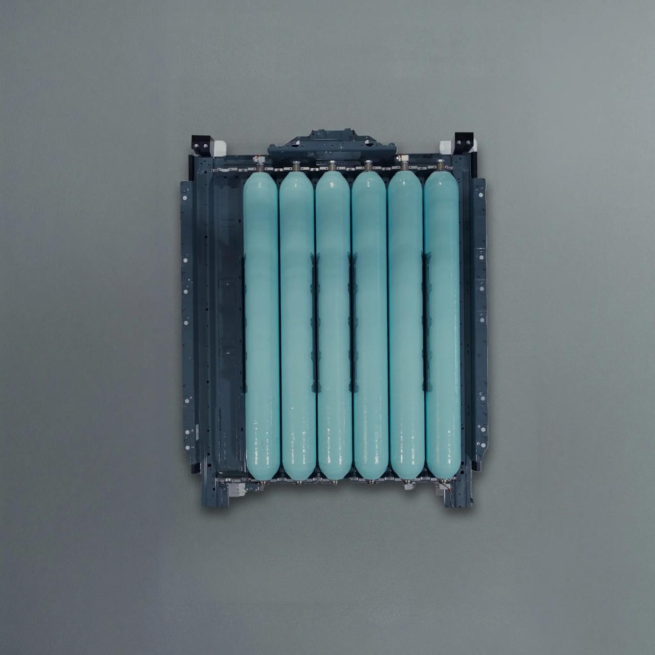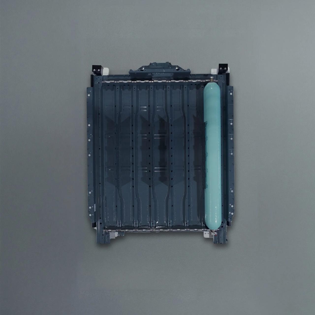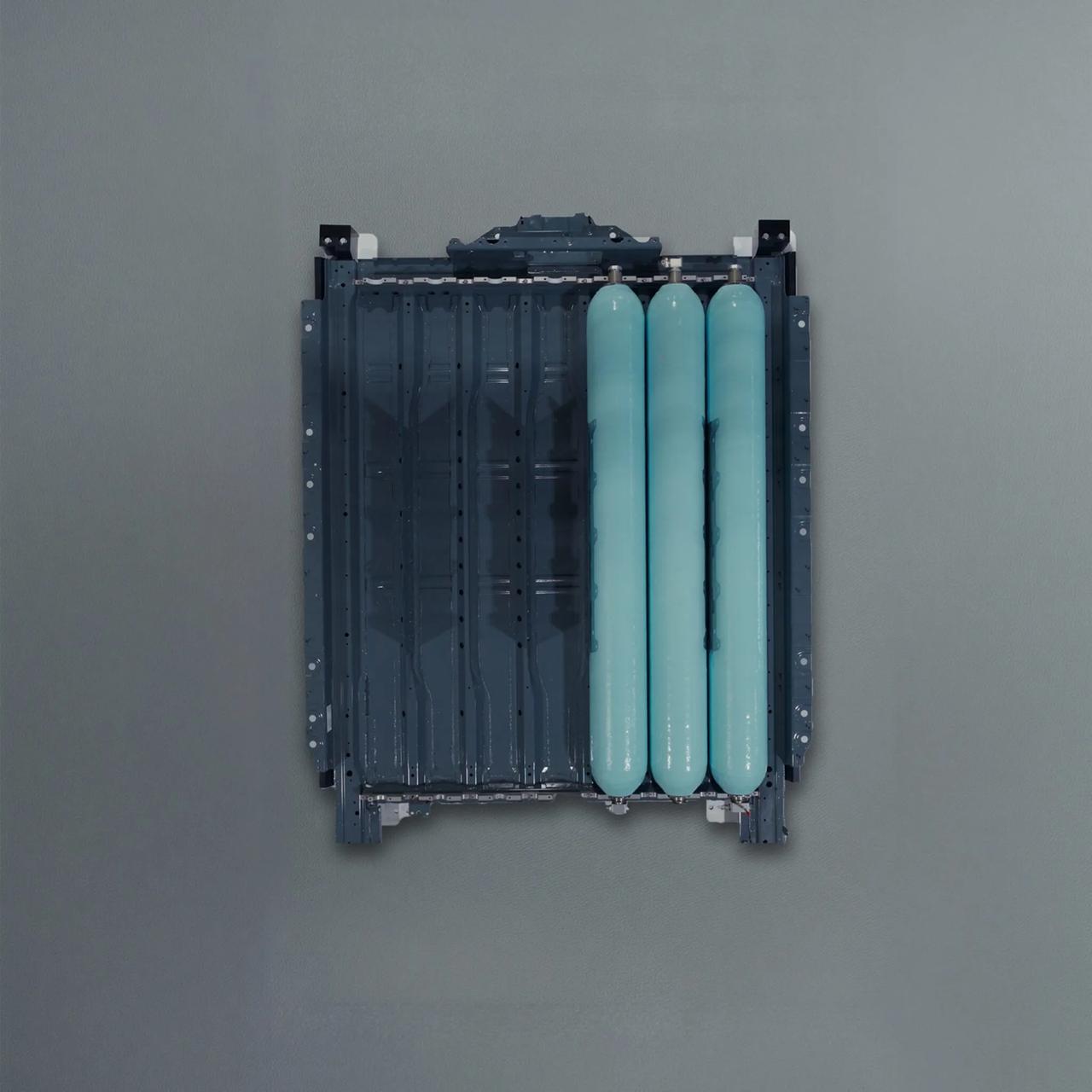 是跟丰田联合研发的第三代氢燃料电池,体积更小、功率密度更高,预计401马力电机和小容量辅助电池,储氢系统升级7罐平铺。