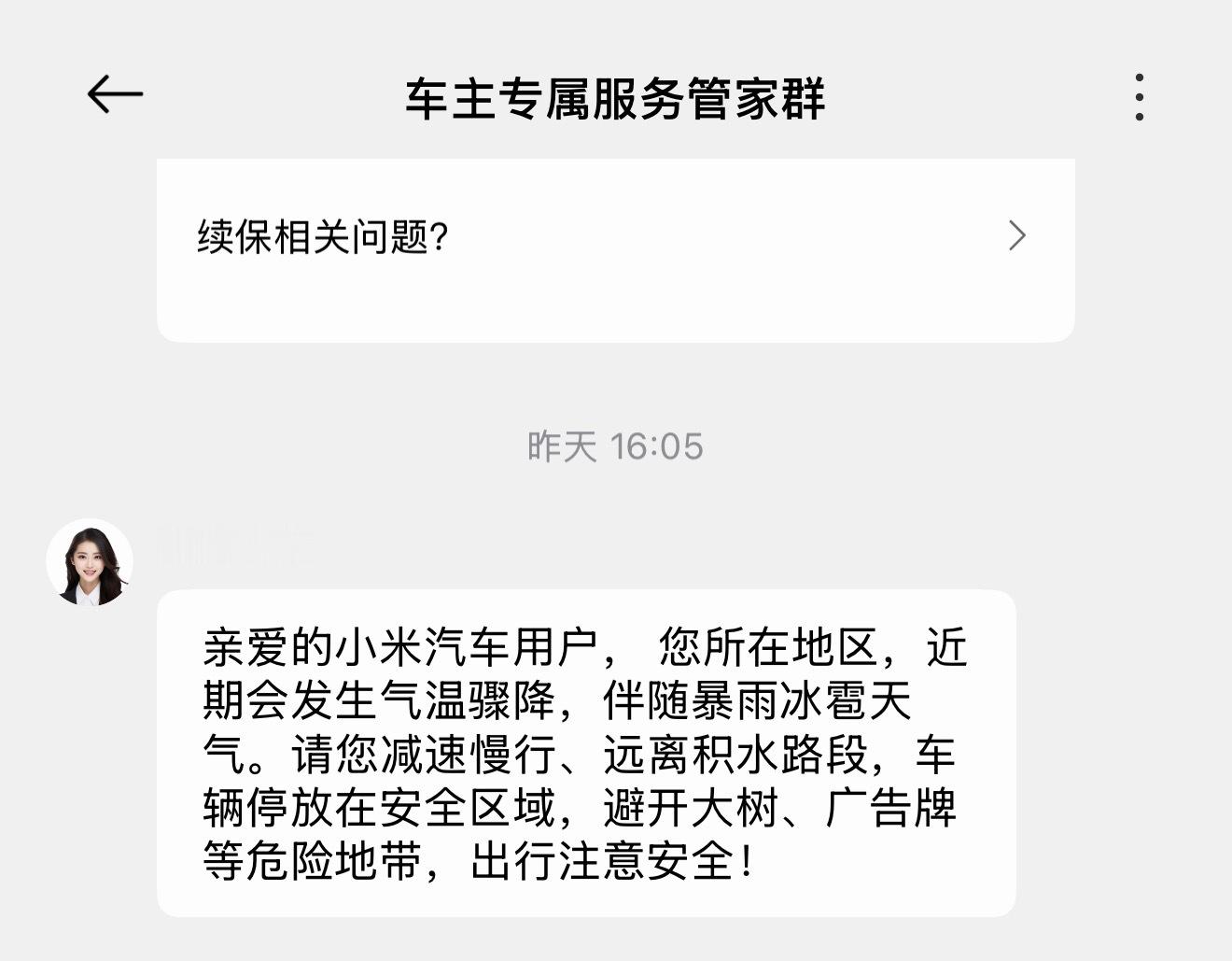小米汽车的售后服务是真的很好,每次去维保都会给洗好车、充满电,实名点赞,另外强烈建议小米车主买一个无忧包,有两次免费补漆服务,无限次上门补胎,8次维保取送车,还有一次车窗玻璃无优服务(可以更换一块出了天幕以外的玻璃),真的挺值得