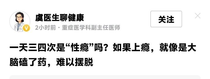 杭州31岁男子自曝“一天三四次”崩溃求助!医生揭开真相:上瘾不是次数多,而是大脑在“吸毒式”逃避痛苦