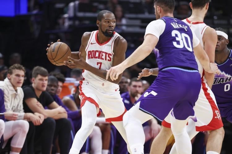 北京时间4月9号,有数据媒体列出了本赛季运球投篮命中率最高的球员排行榜,湖人队的东契奇排名高居第1位,他运球投篮的命中率高达60.3%,排名第二的是雷霆队的亚历山大,这一命中率数据达到58.9%。排名第三的是森林狼队的爱德华兹,排名第四的是骑士队的米切尔,排名第五的是湖人队的里夫斯。火箭队的杜兰特排名第7位,他运球之后投篮的命中率达到了56.5%。杜兰特真的是一招鲜吃遍天,他运球之后的干拔投篮在联盟当中独树一帜,虽然不是联盟第一的水平,但是杜兰特能够在这一项数据上排名联盟前十,自然能够体现他的球风和个人能力。本赛季杜兰特场均可以贡献26分,他是火箭队的第一得分手和第一进攻选择,干拔跳投也让杜兰特可以轻松地拿到分数。
